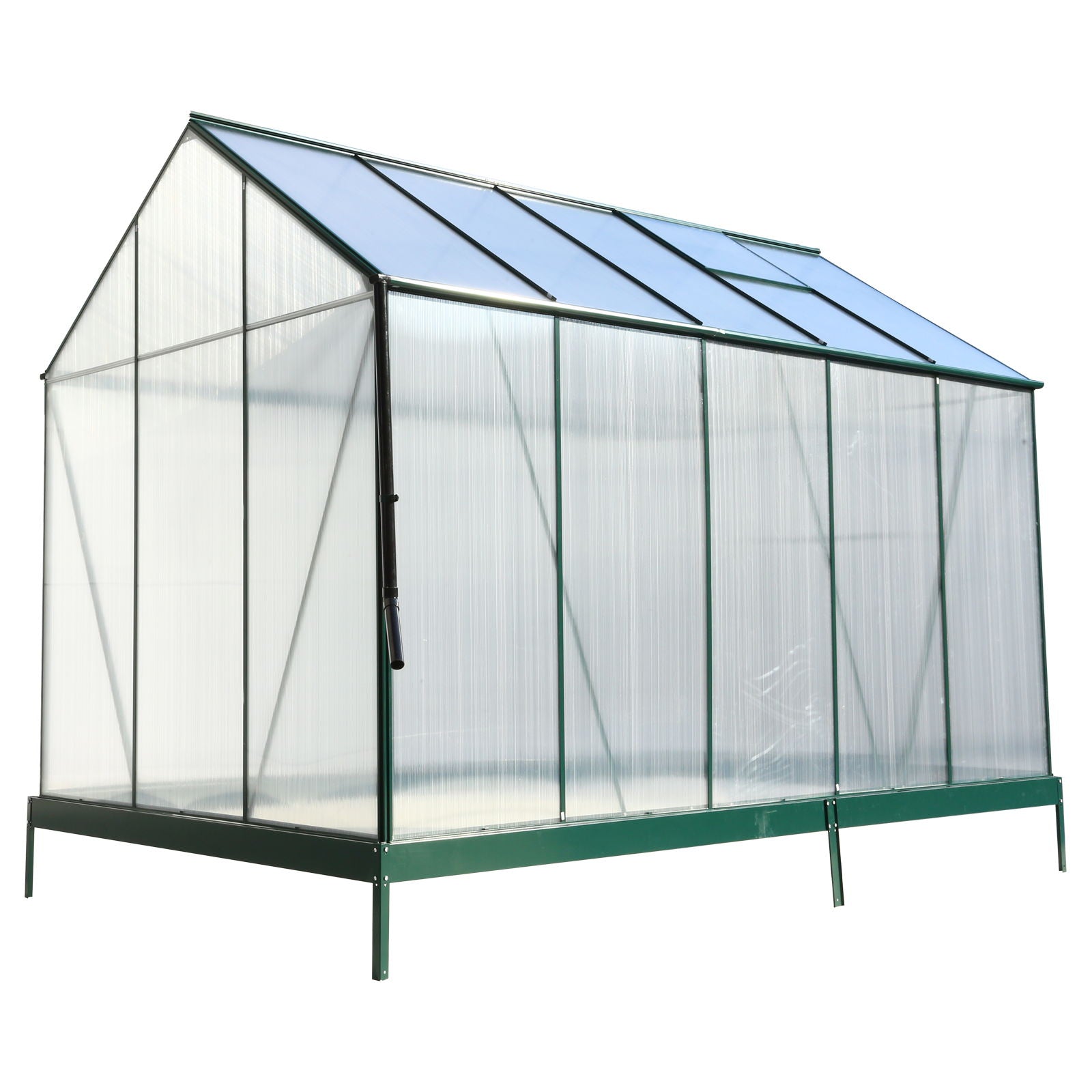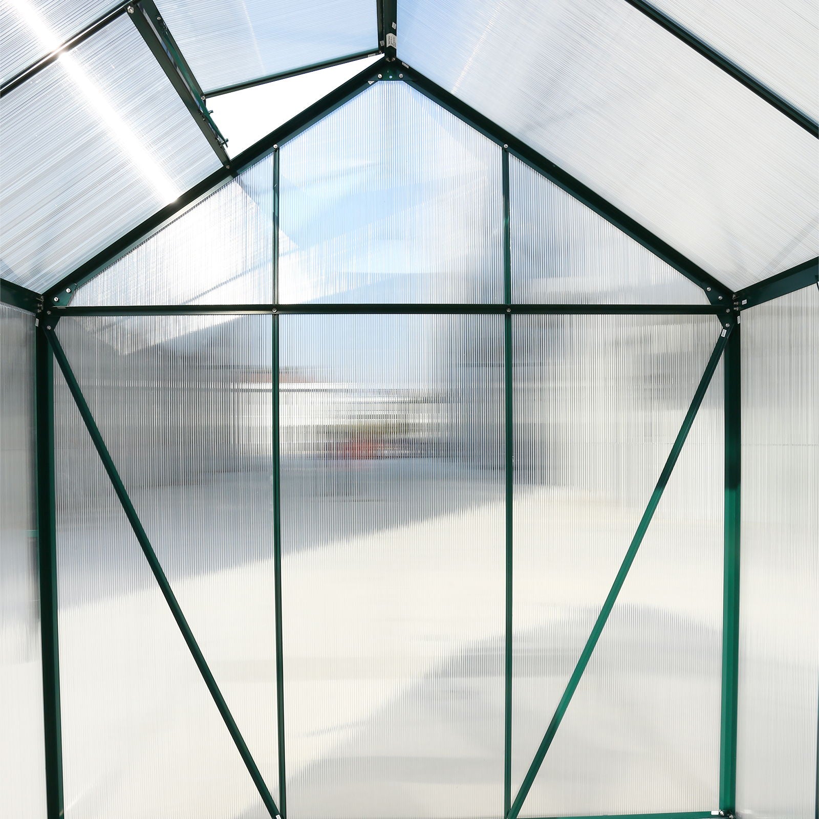 6.3'x8.2'x7' Polycarbonate Greenhouse, Heavy Duty Outdoor Aluminum Walk-In Green House Kit With Rain Gutter, Vent And Door For Backyard Garden - Green