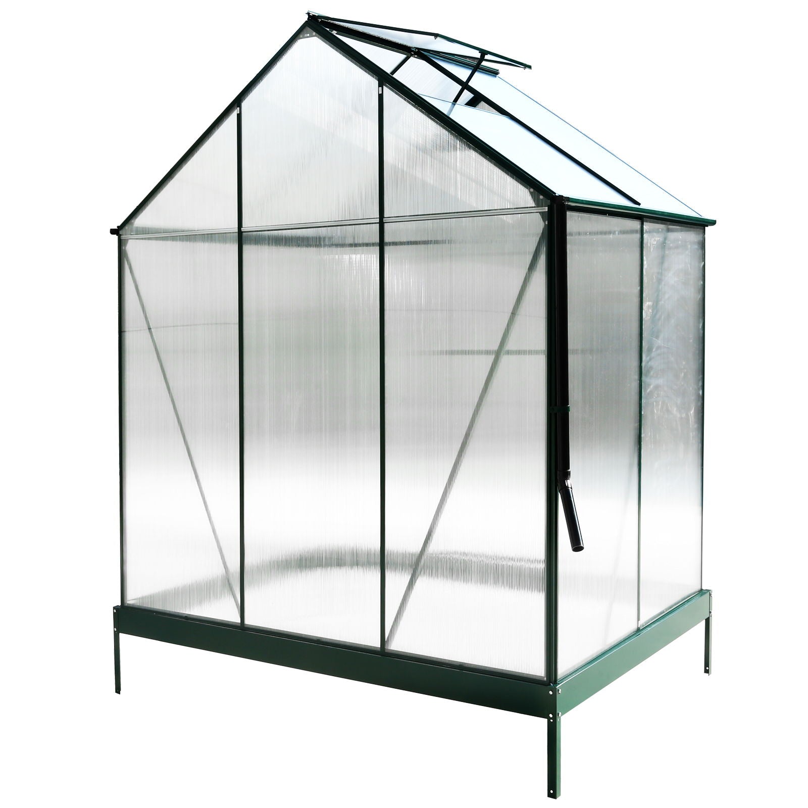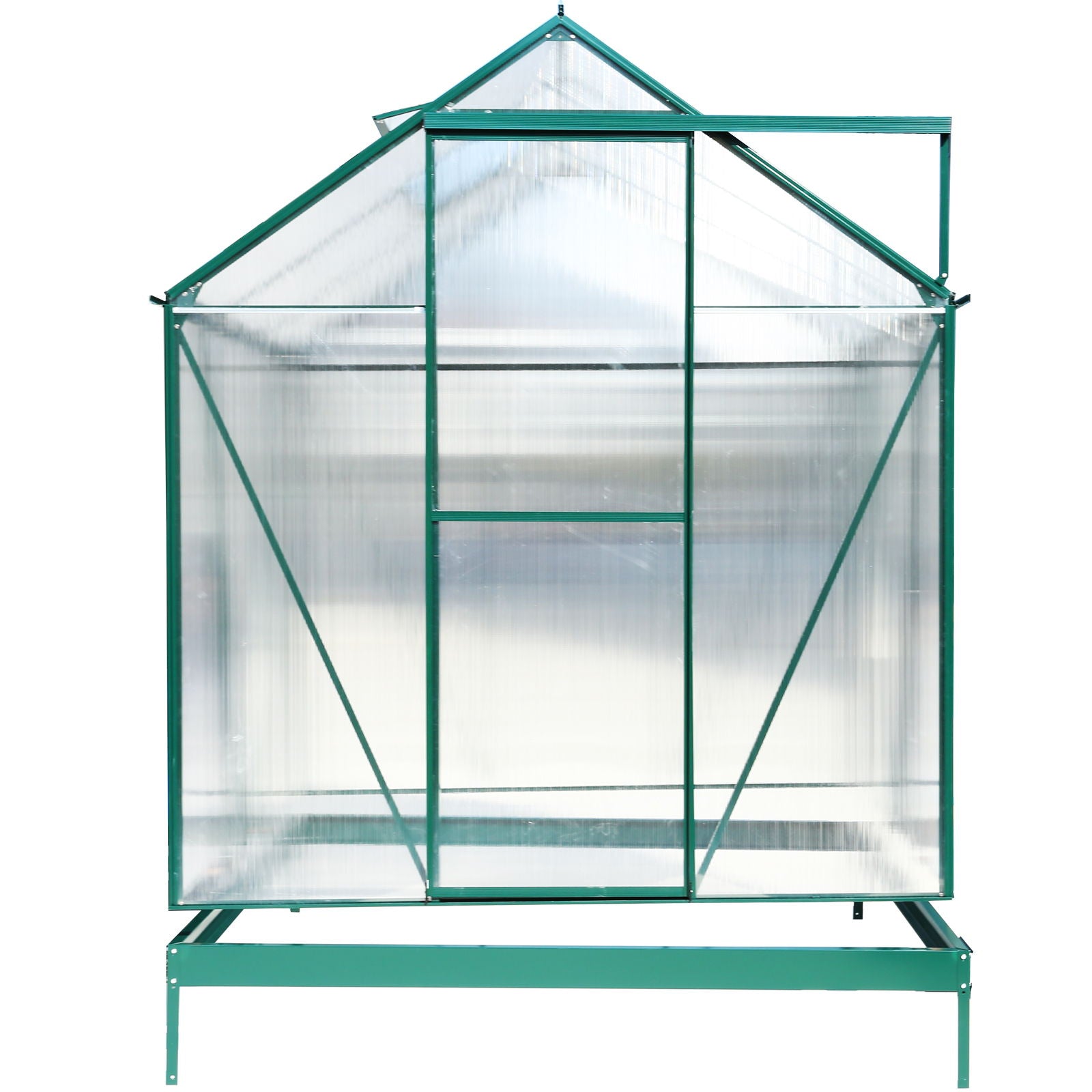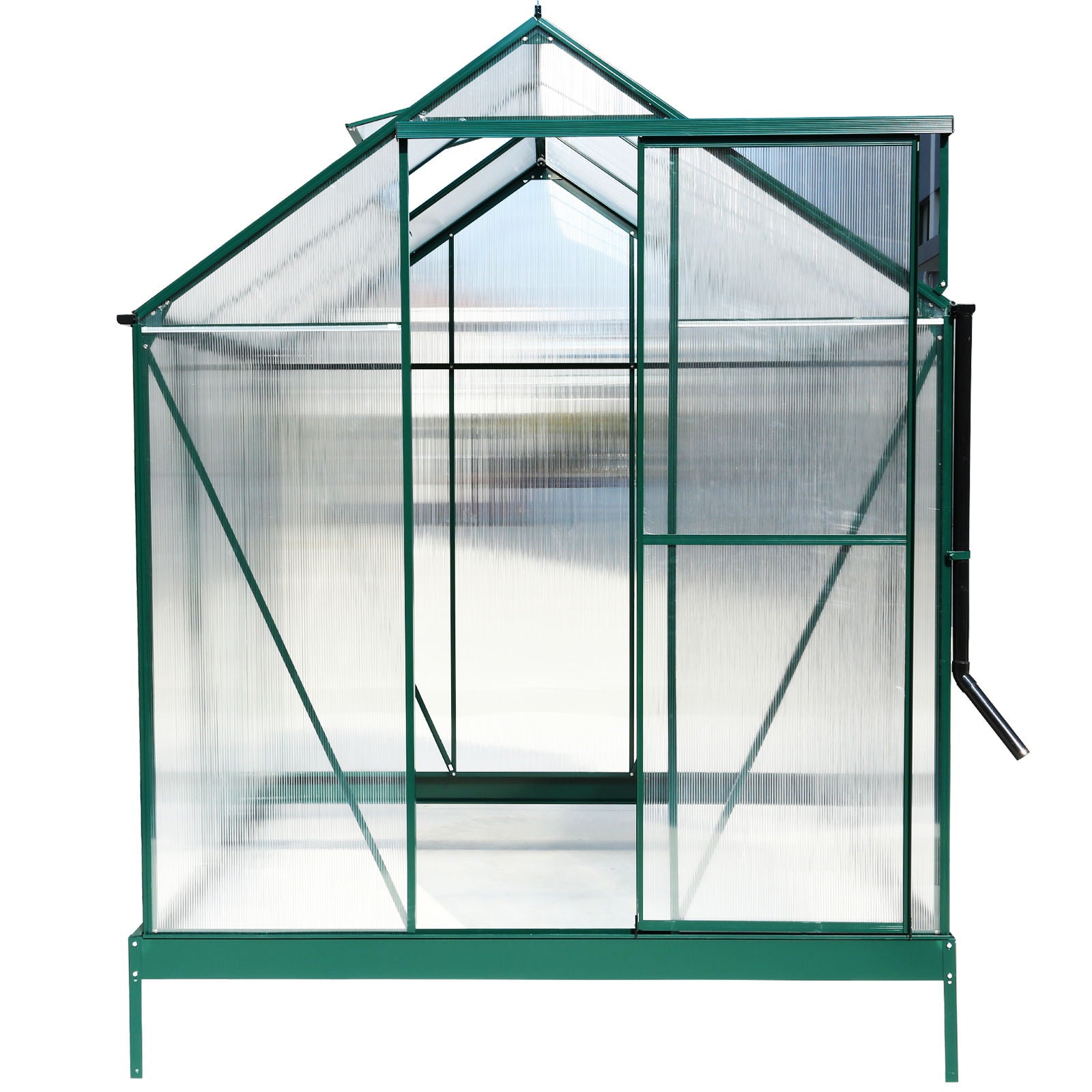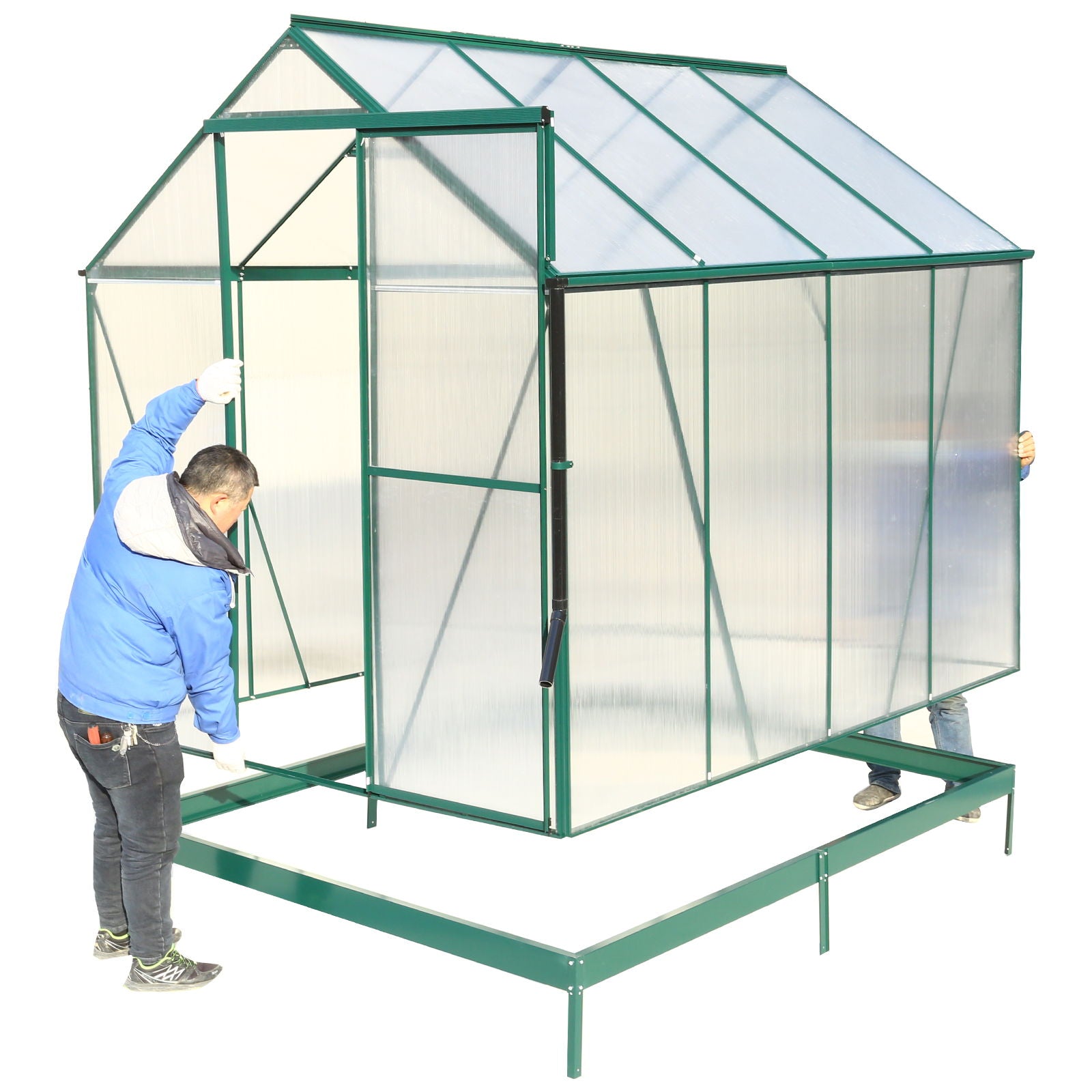 6.3'x6.2'x7' Polycarbonate Greenhouse, Heavy Duty Outdoor Aluminum Walk-In Green House Kit With Rain Gutter, Vent And Door For Backyard Garden - Green