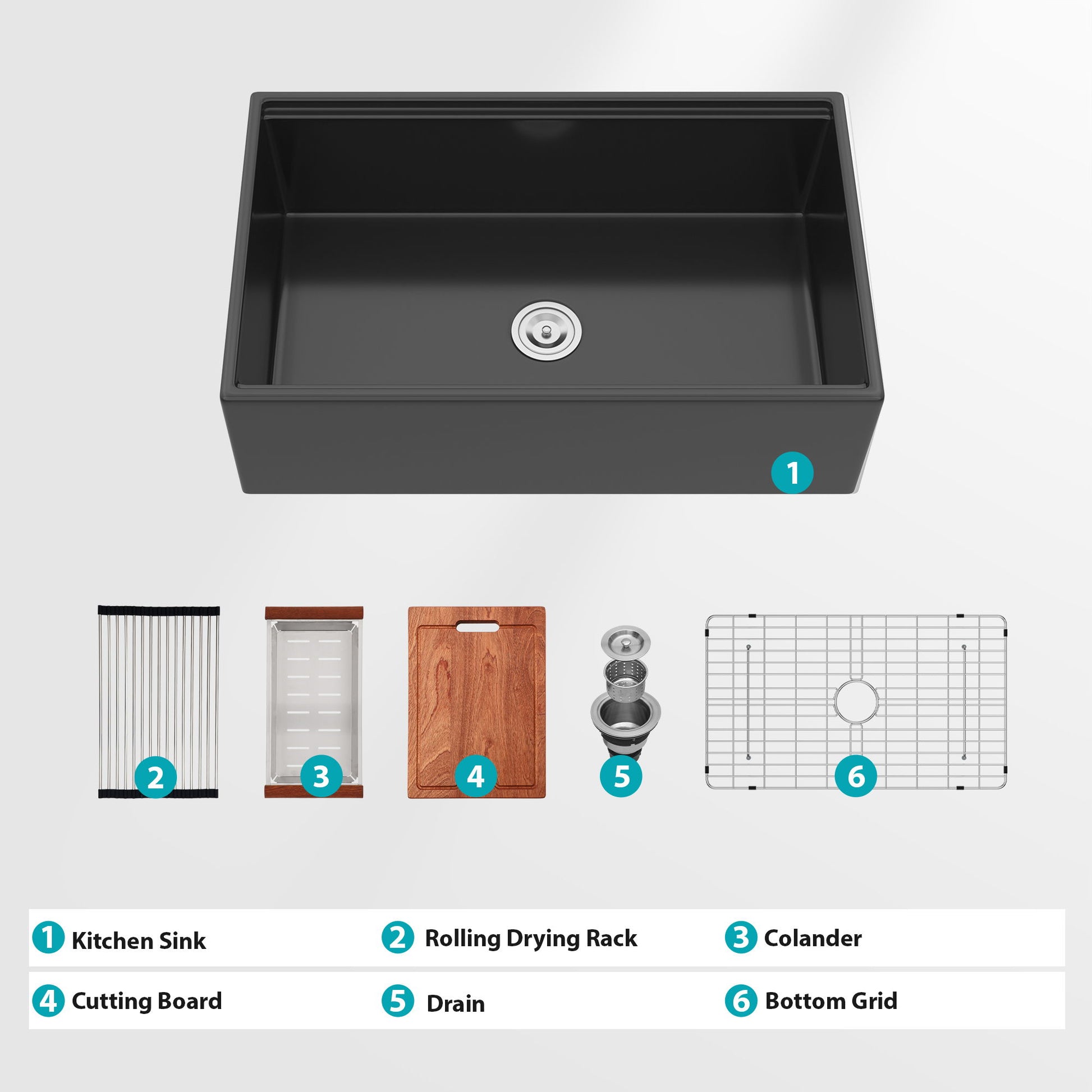 - Complete Package: Includes bottom grid, drain assembly, drying rack, cutting board, and colander for immediate use.