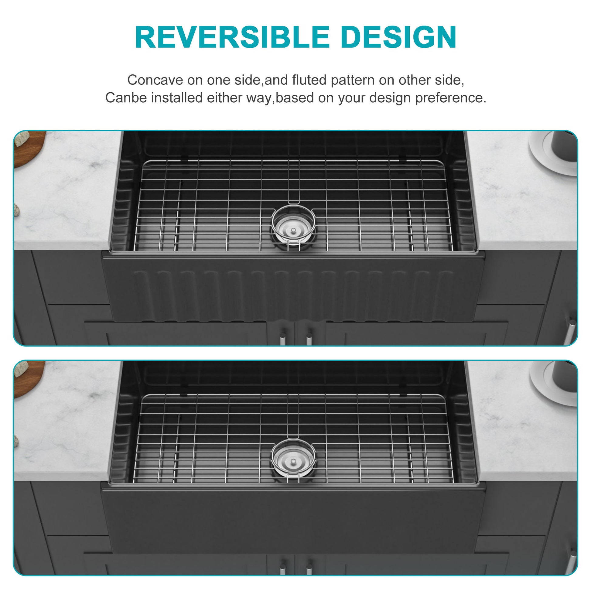 - Reversible Apron Front: Two distinct stylesone smooth, one fluted-allow customization to suit individual kitchen decor preferences.