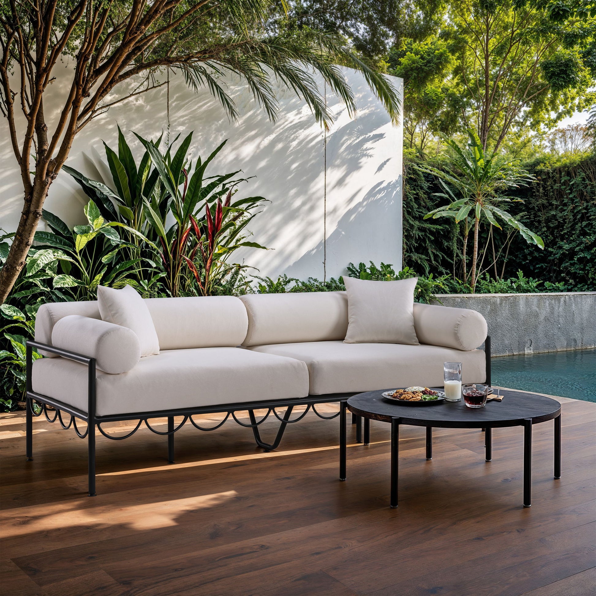 Portofino - Resilient Water Repellent Fabric 85.75" Upholstered Outdoor Patio Sofa - Cream