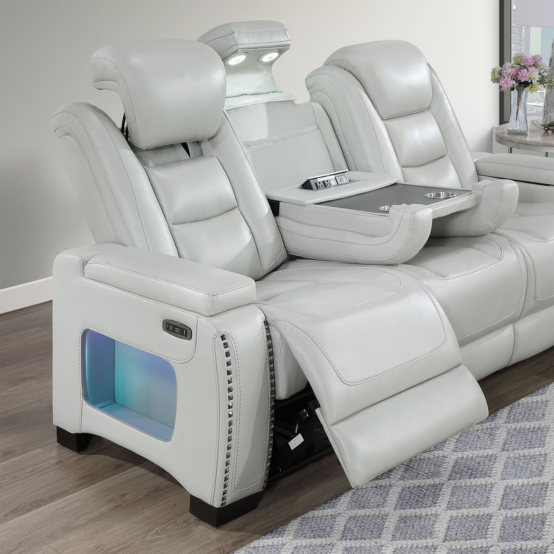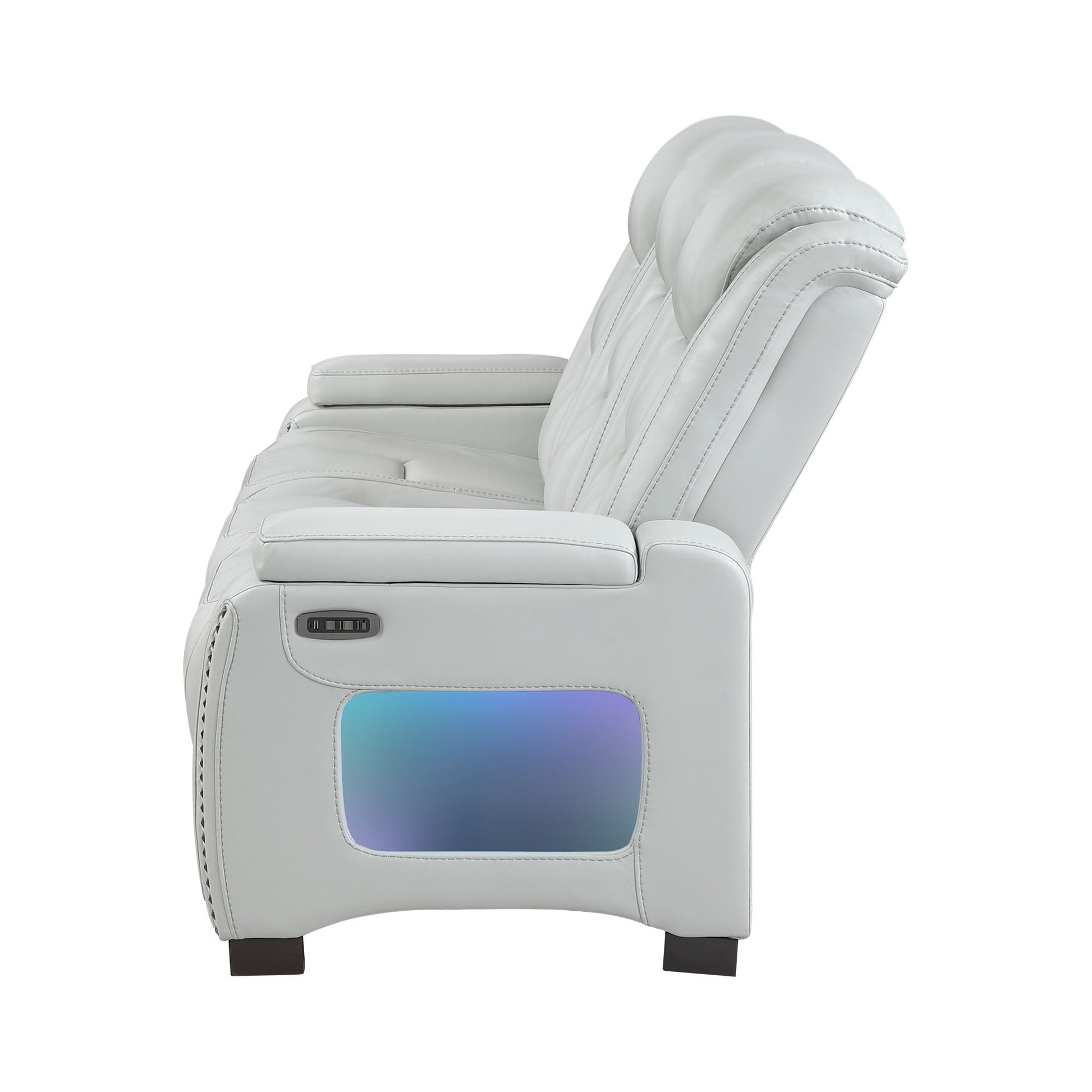 Power Sofa With USB LED Headrest, Bookshelf Arms, And Storage - Grey