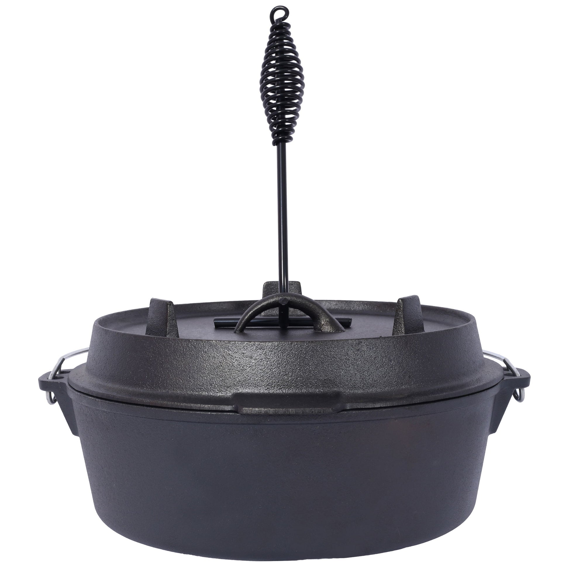 Pre-Seasoned Cast Dutch Oven With Skillet Lid And Pot Rack, 12 Quart - Black