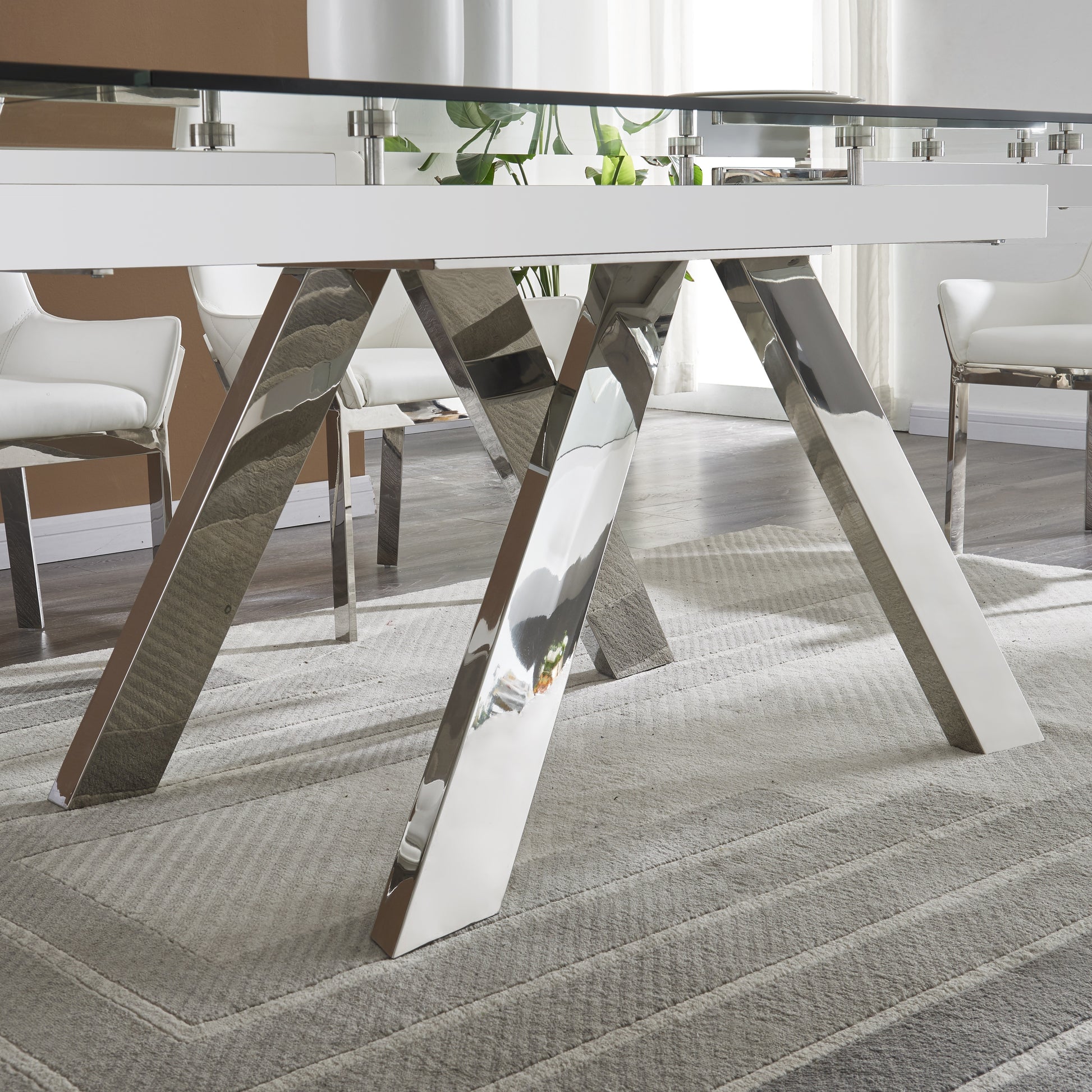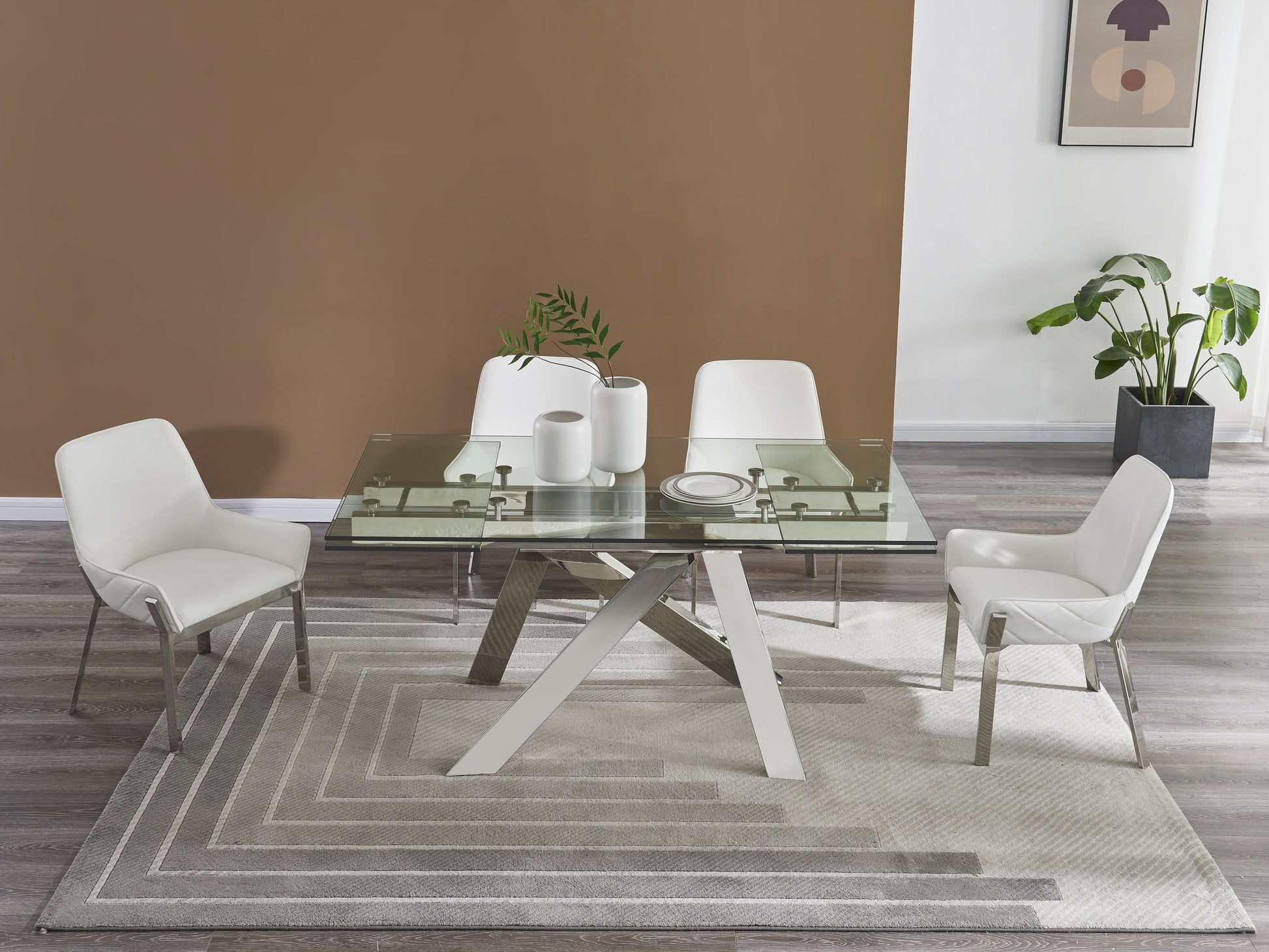 The J&M Premier Extension Dining Table combines contemporary elegance with everyday functionality, making it the perfect centerpiece for the modern home. Designed with precision and sophistication, this stunning table features a tempered glass top that beautifully reflects light, creating a sense of openness and refinement in any dining space.