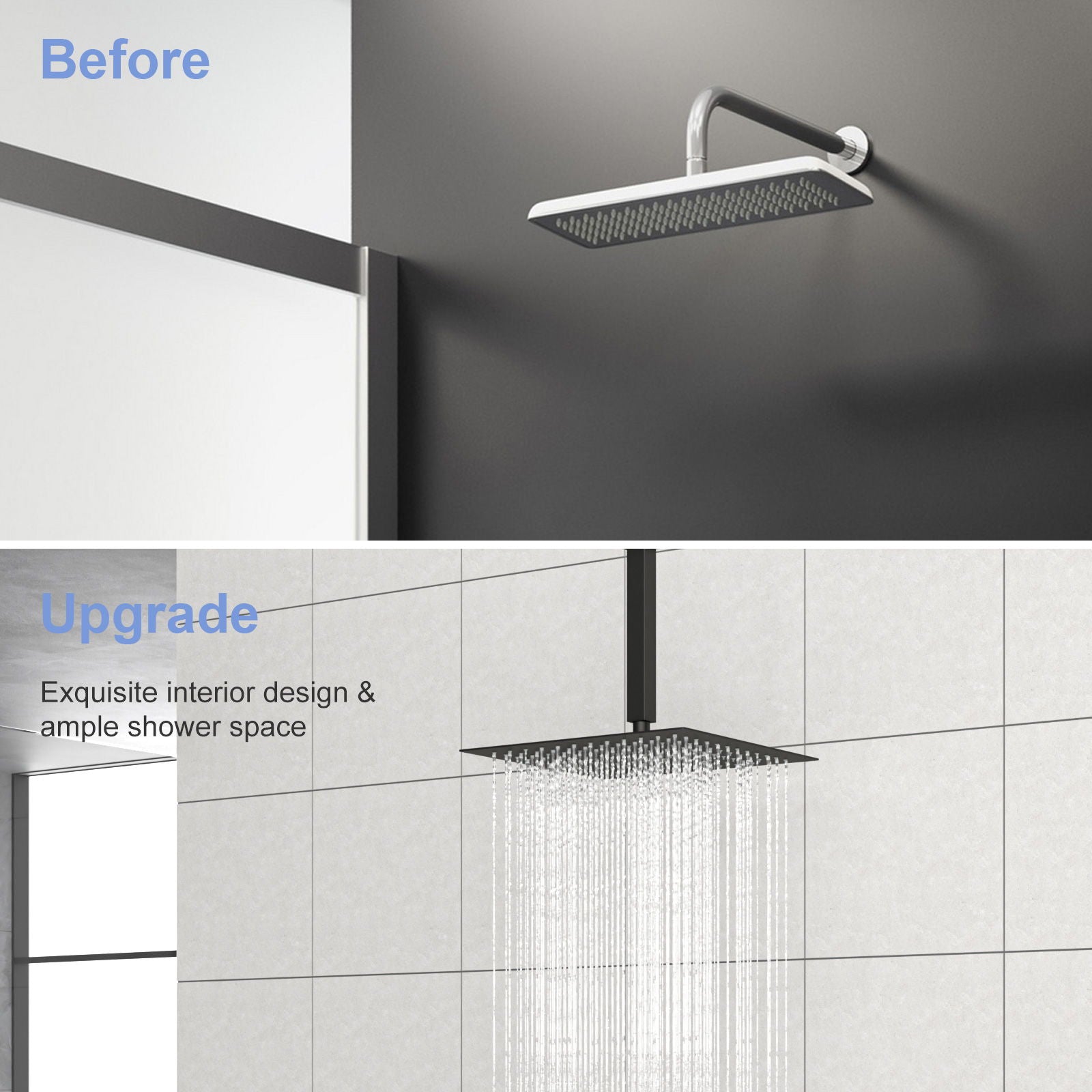 - Ceiling Mounted: Perfectly suits bathroom shower systems, including rainfall showerheads.