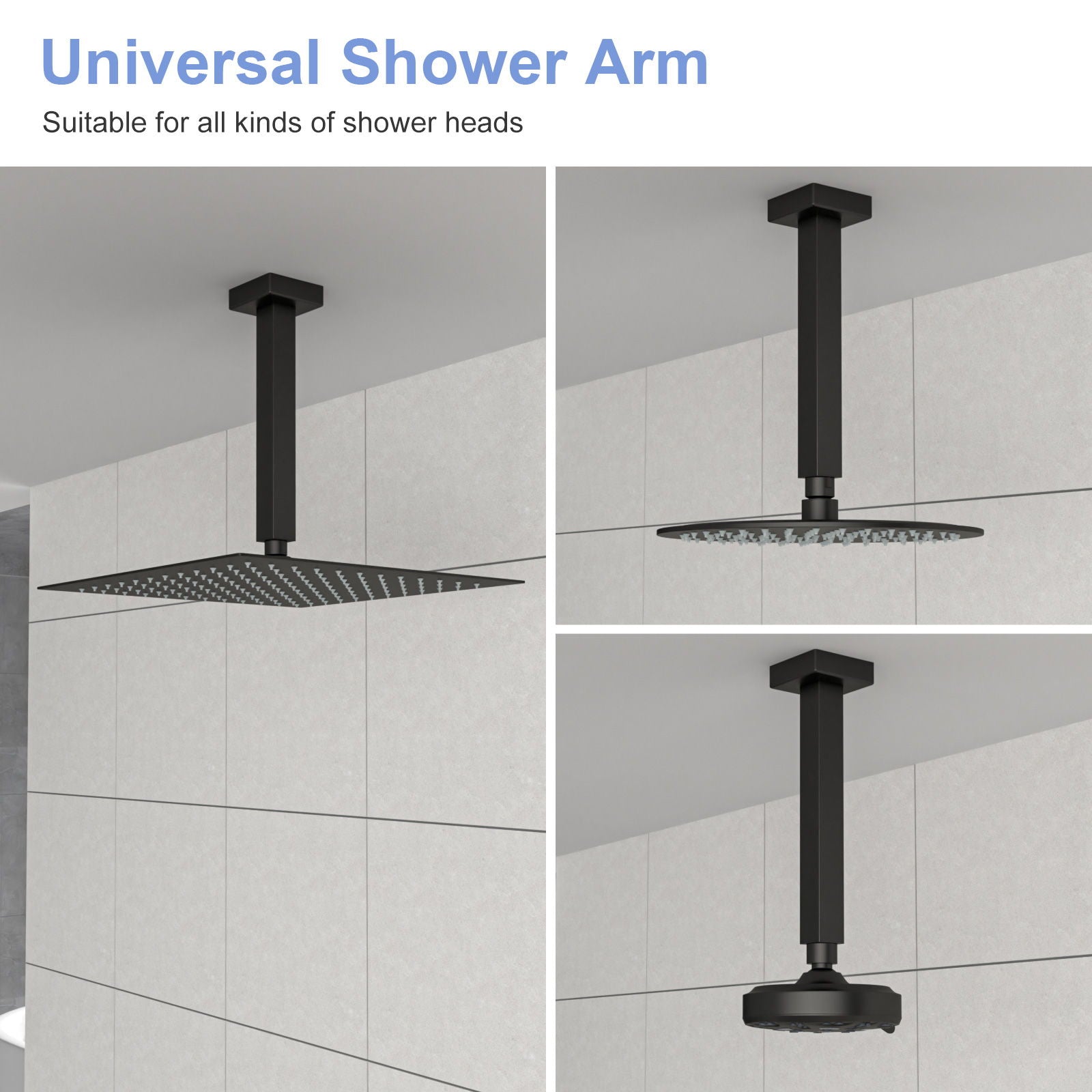 Premium 8" Ceiling Mounted Shower Arm With Flange In Stainless Steel - Matte Black