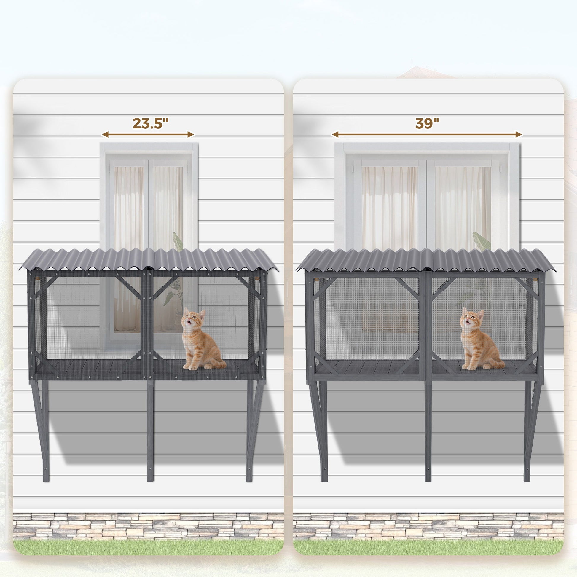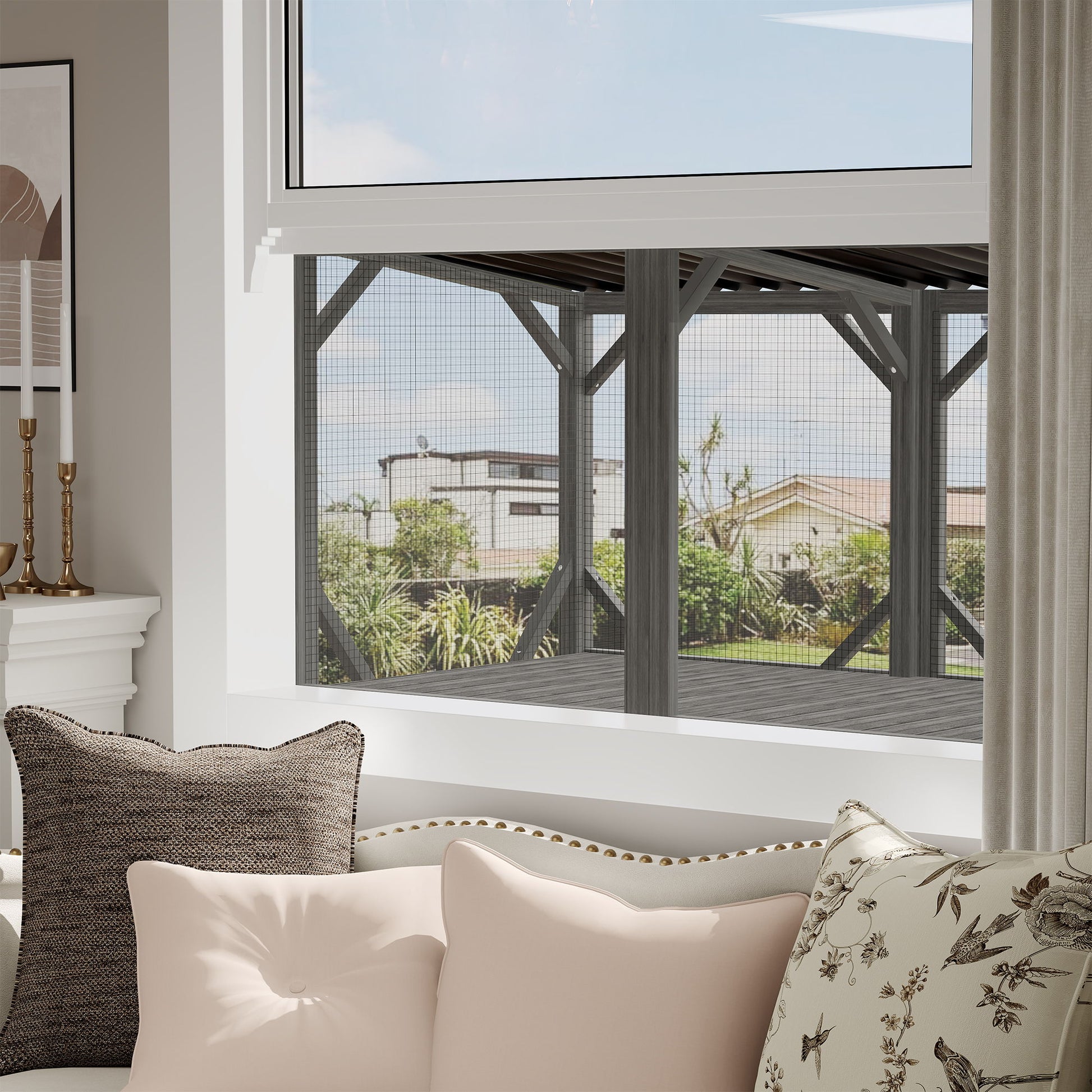 Premium Cat Window Box With Bug Proof Net For Large Indoor Cats Spruce Wood & Polyester - Antique Gray