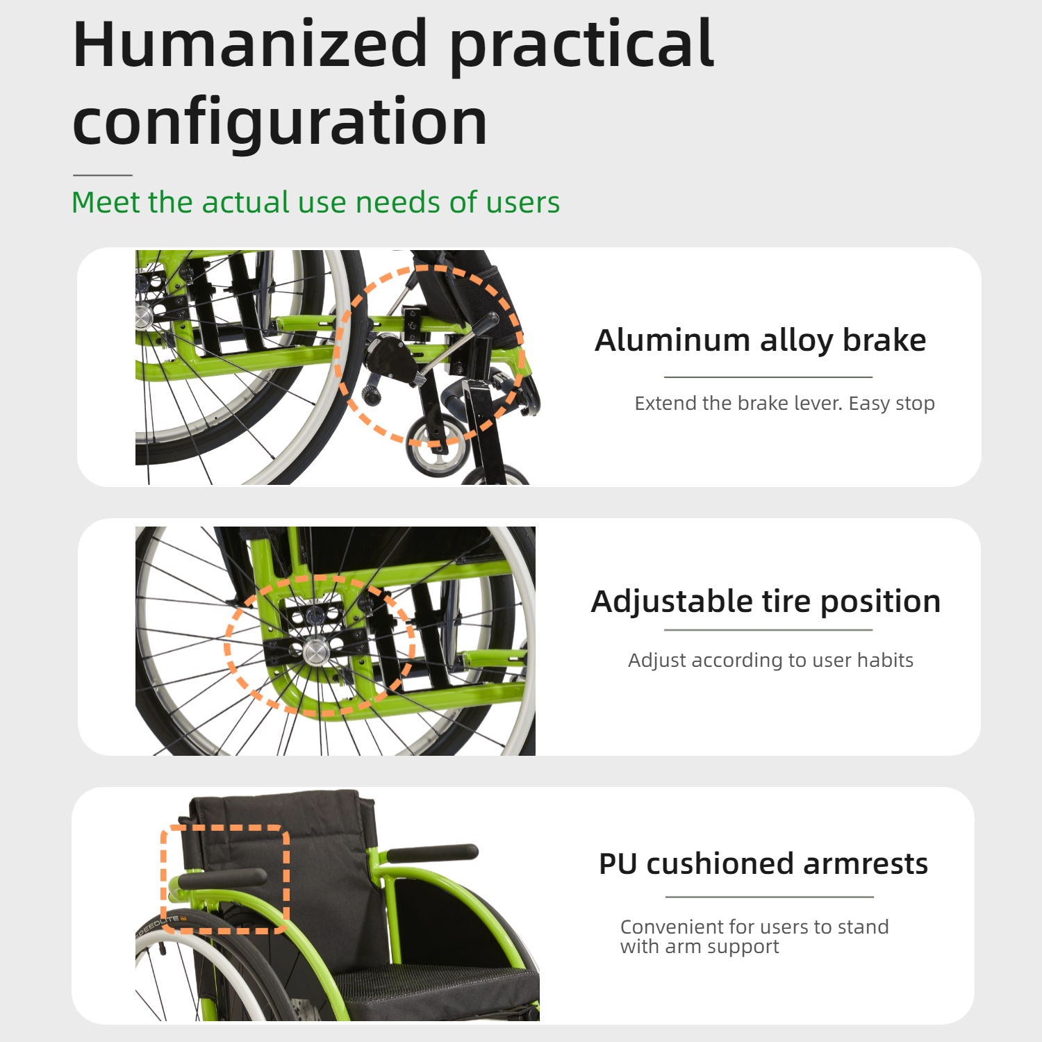 - Strong Manipulation : Our sport wheelchair combines strength and portability. The ergonomic design promotes strong manipulation, making it the ultimate lightweight transport wheelchair for adults seeking freedom and reliability.