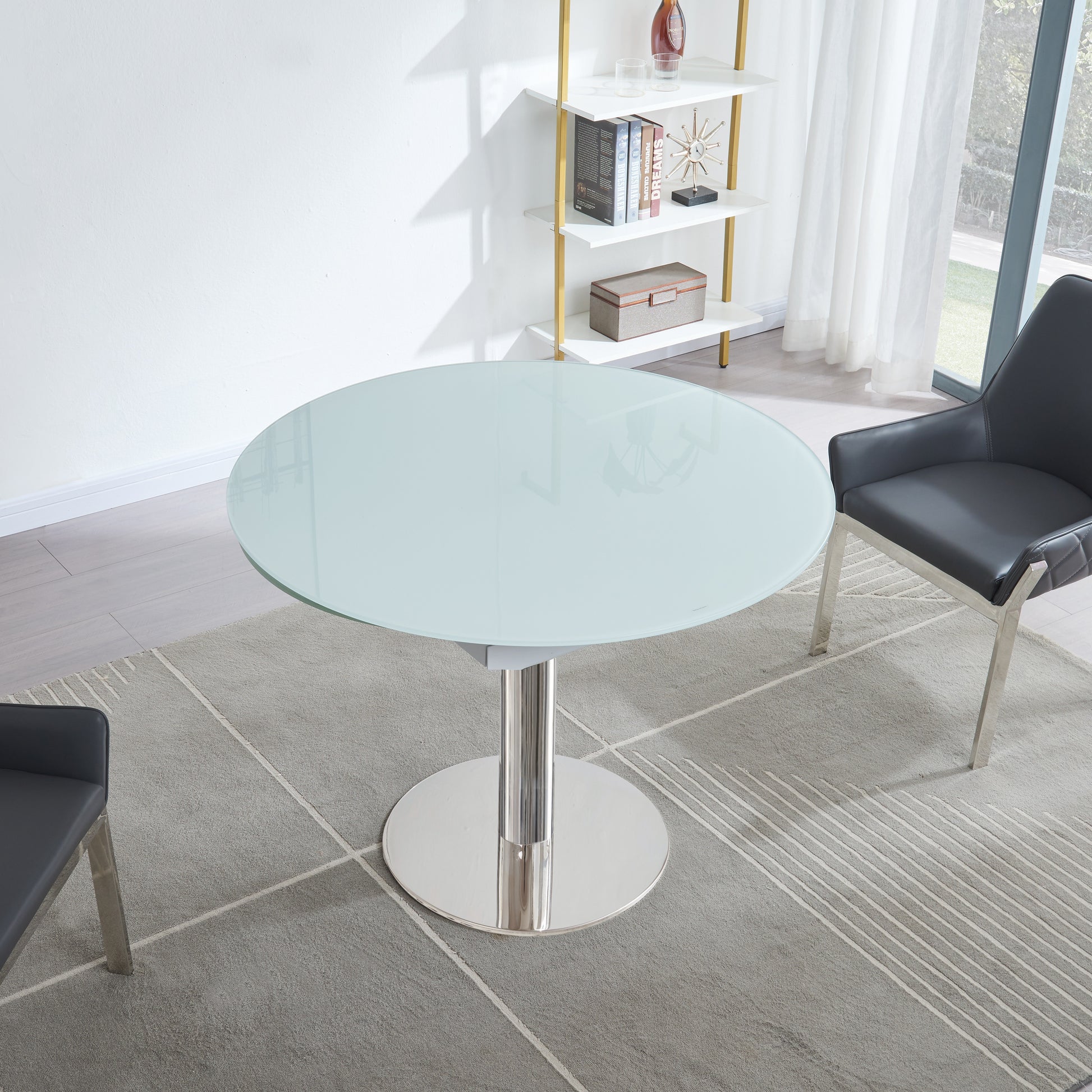 The Pub Extension Dining Table by J&M Furniture reimagines modern dining with a sleek, space-conscious design perfect for today’s homes. Crafted with a white frosted glass top, this table exudes contemporary sophistication, effortlessly complementing a wide range of interior styles. The glass surface is not only visually striking but also easy to clean, making it ideal for both casual meals and elegant gatherings.