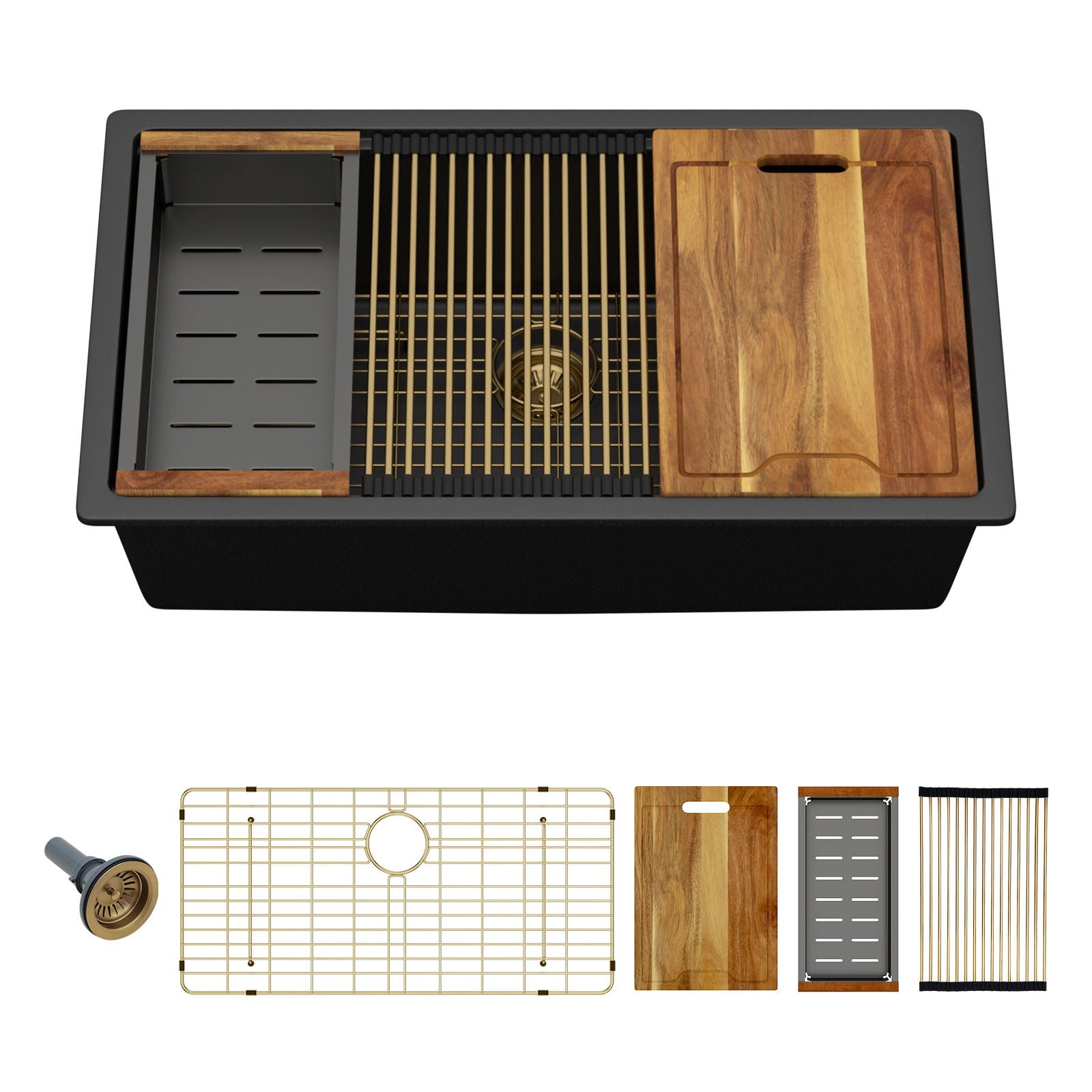 Kitchen Sink With Undermount Design, Durable Single Bowl Workstation - Black