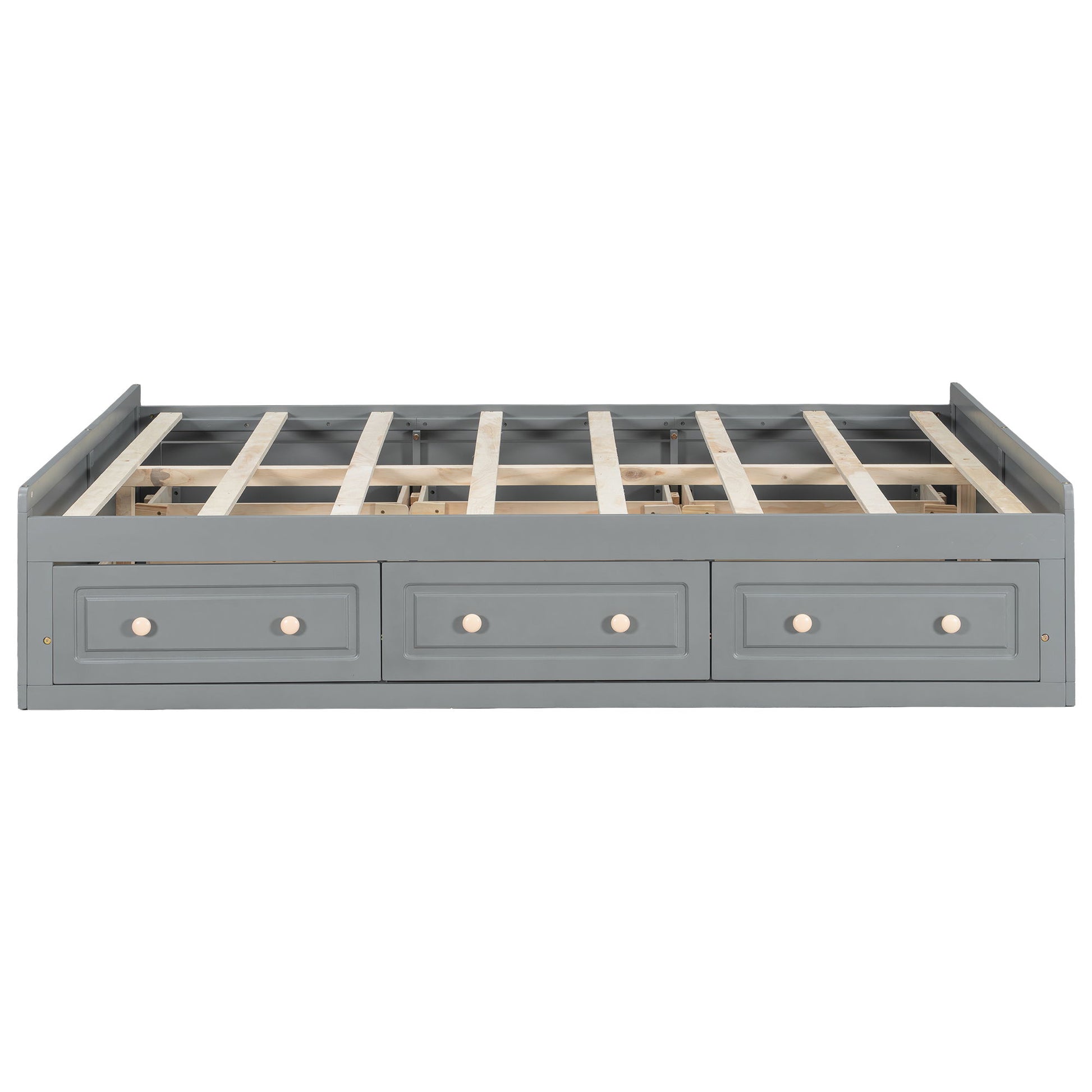 Queen Size Platform Bed Frame With 6 Drawers - Gray