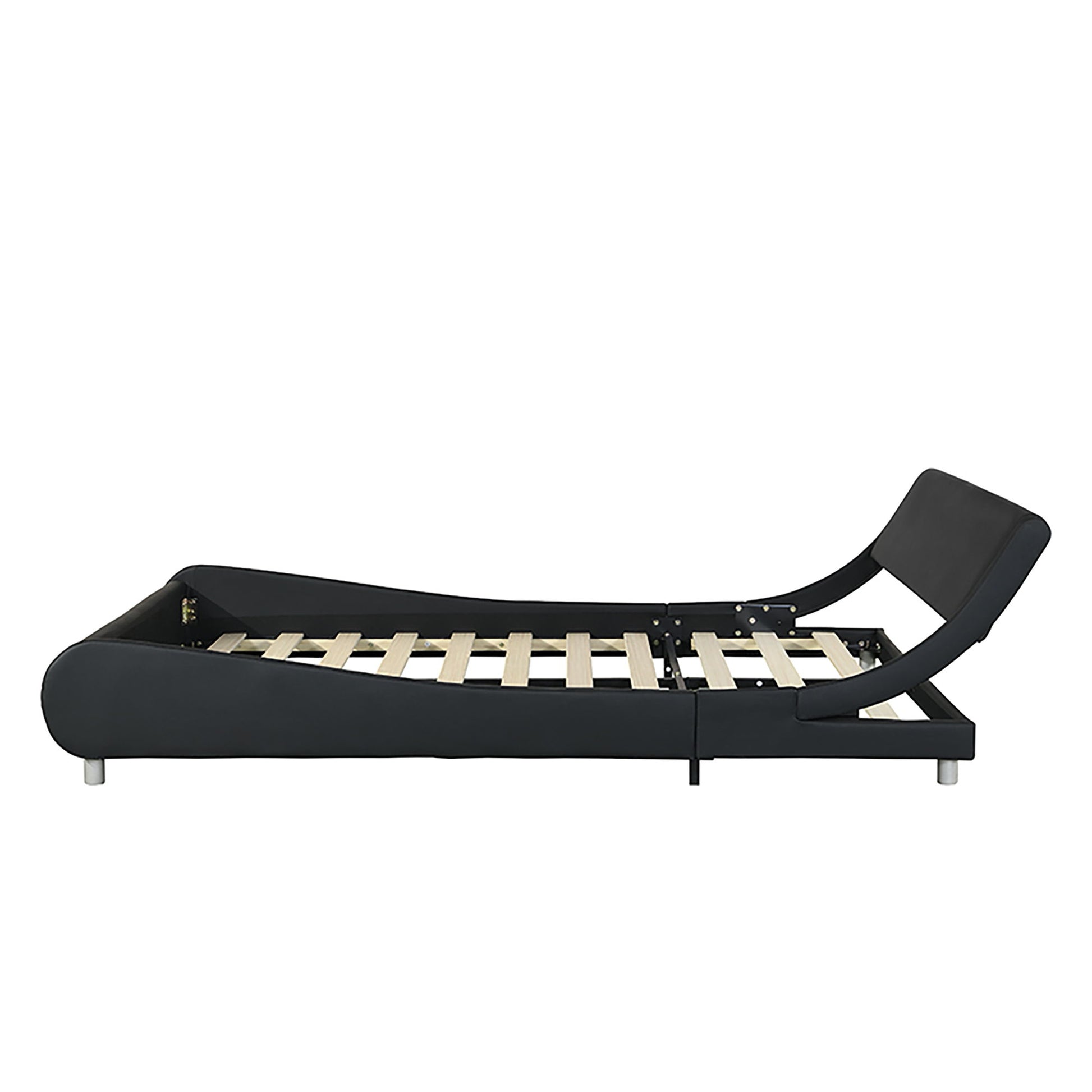 Queen Size Upholstered Platform Bed Frame With LED Lighting, Curve Design, Slat Support, No Box Spring Needed - Black