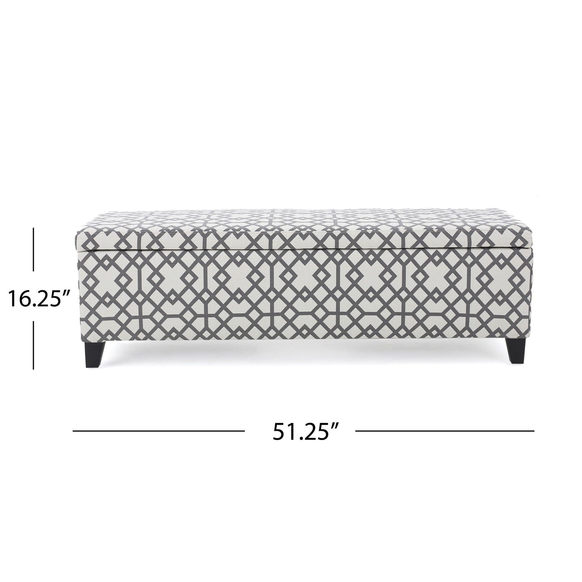 - POLYESTER BLEND UPHOLSTERY: Wrapped in a polyester blend with a geometric pattern in neutral gray and white tones, adding a modern touch to any decor.