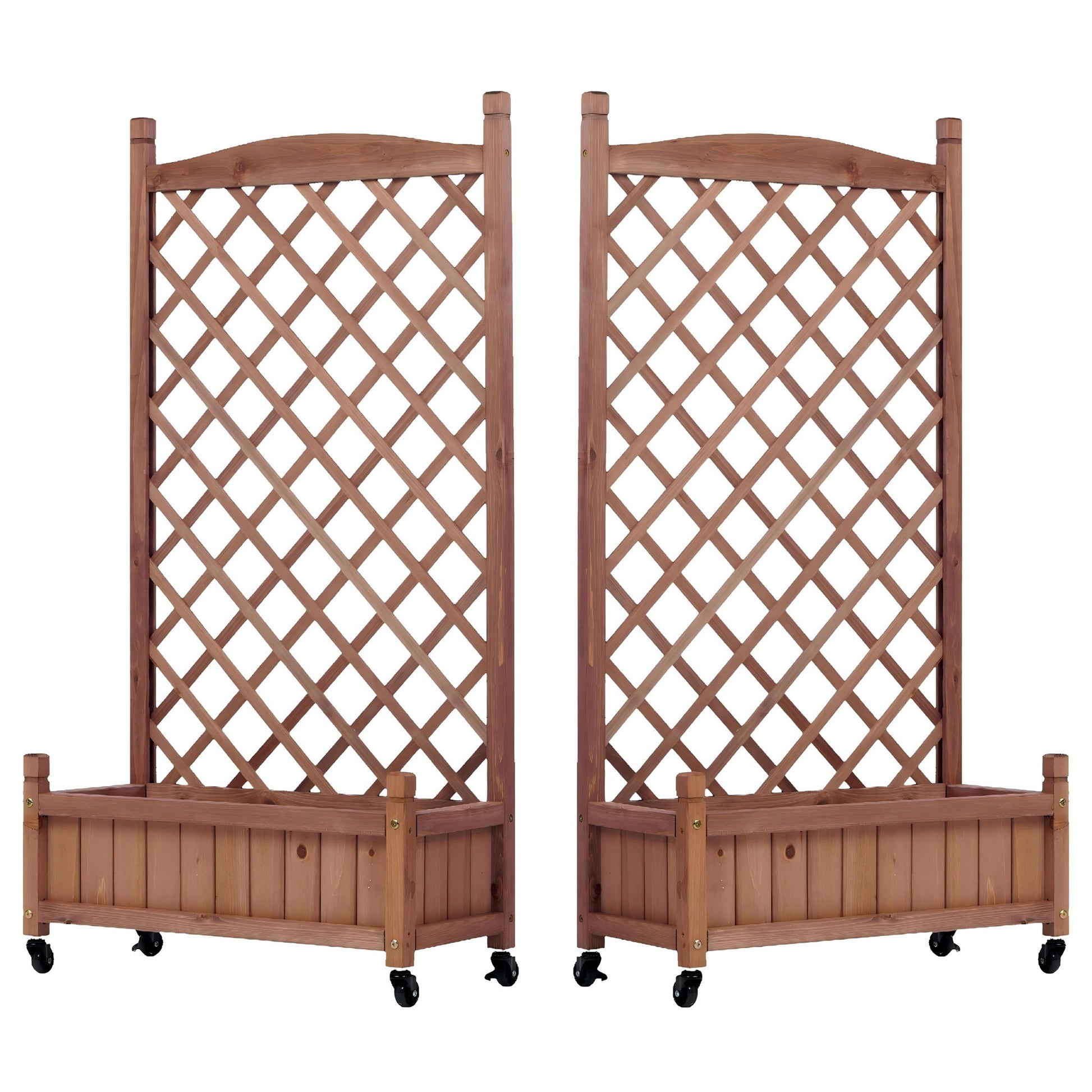 Raised Garden Bed With Trellis 2 Pack, Outdoor Planter Box & Plant Stand With Climbing Racks - Brown