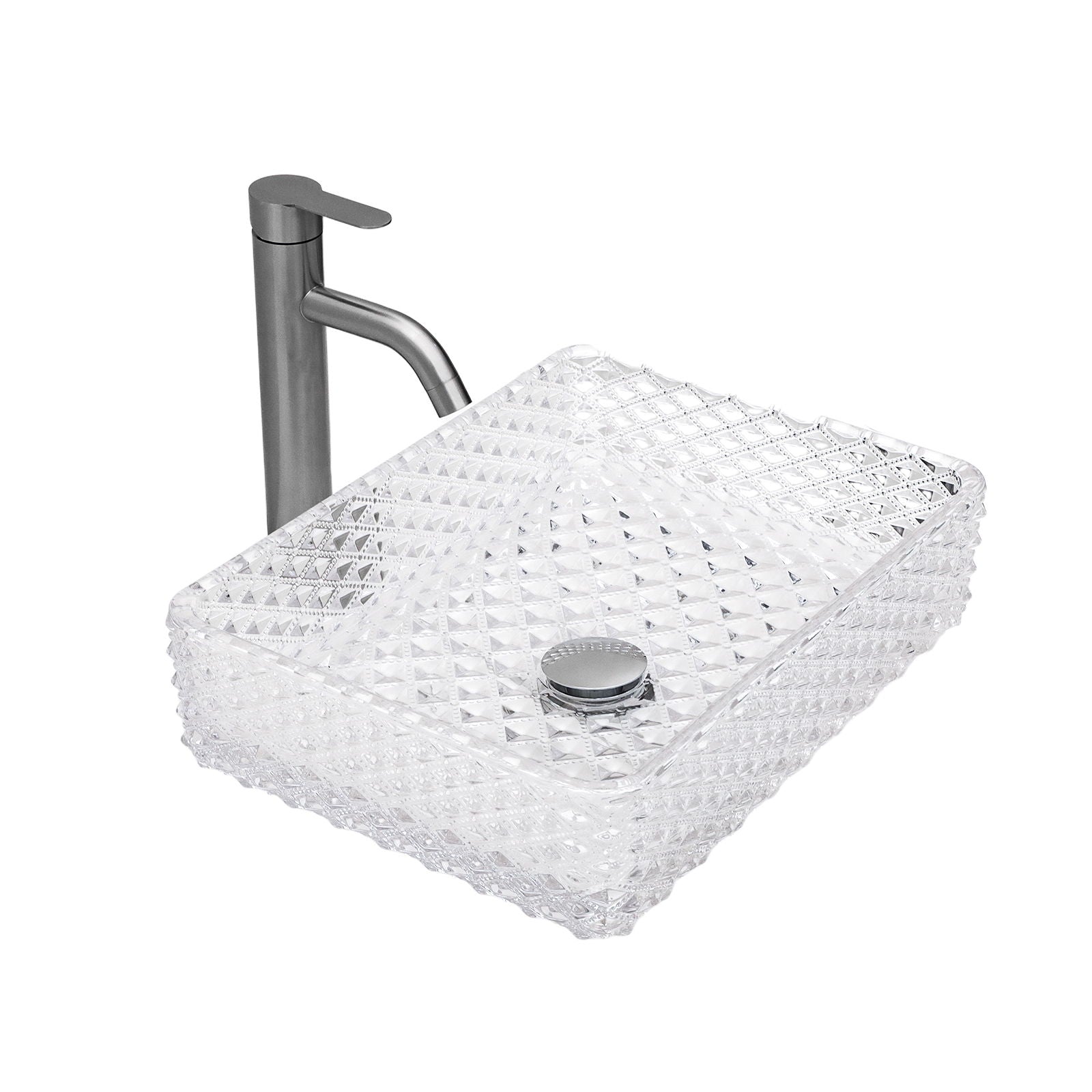 Rectangle Vessel Sink With Diamond Texture With Pop Up Drain (No Faucet) - White