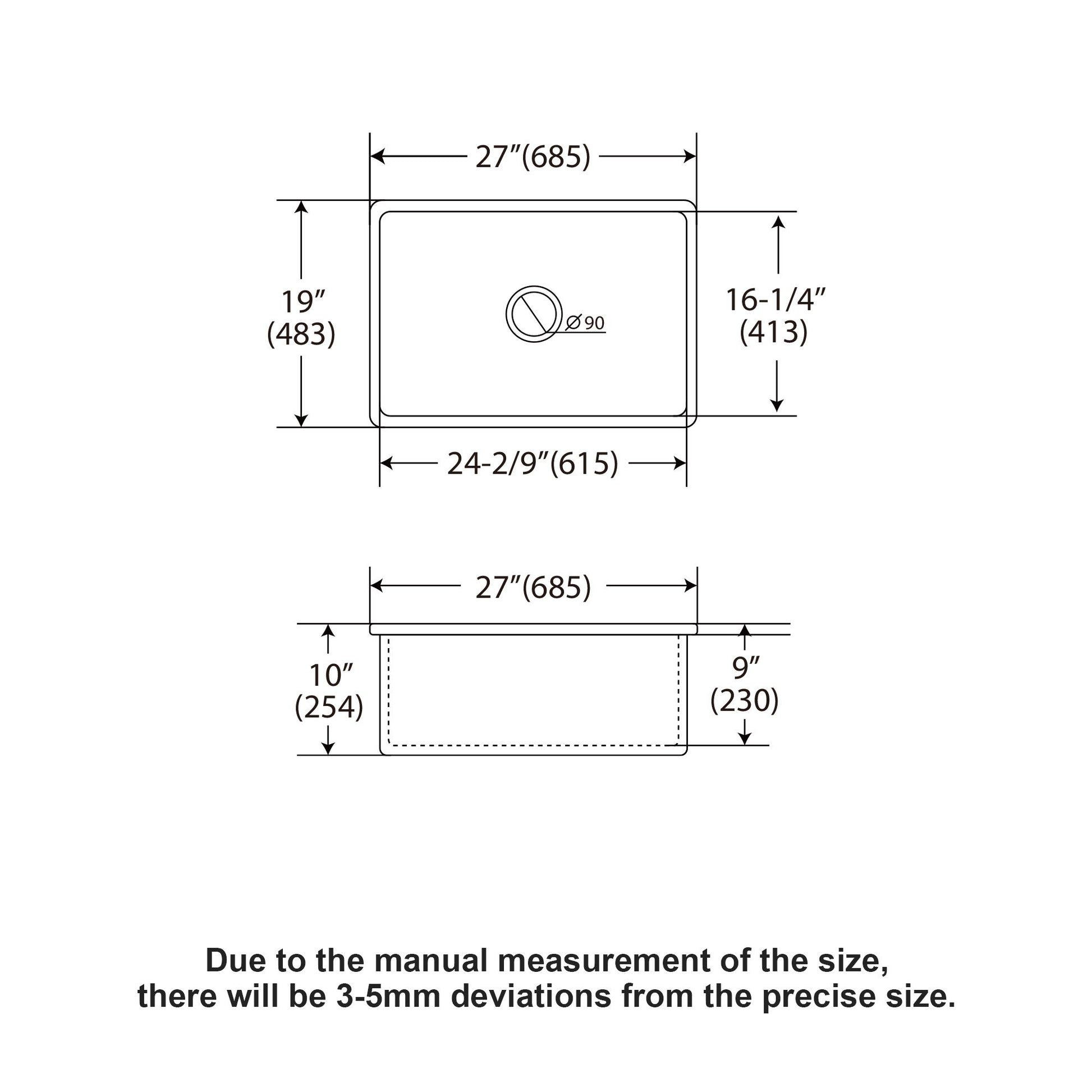 Rectangular Deep Single Bowl, Kitchen Sink With Dual Mount Installation