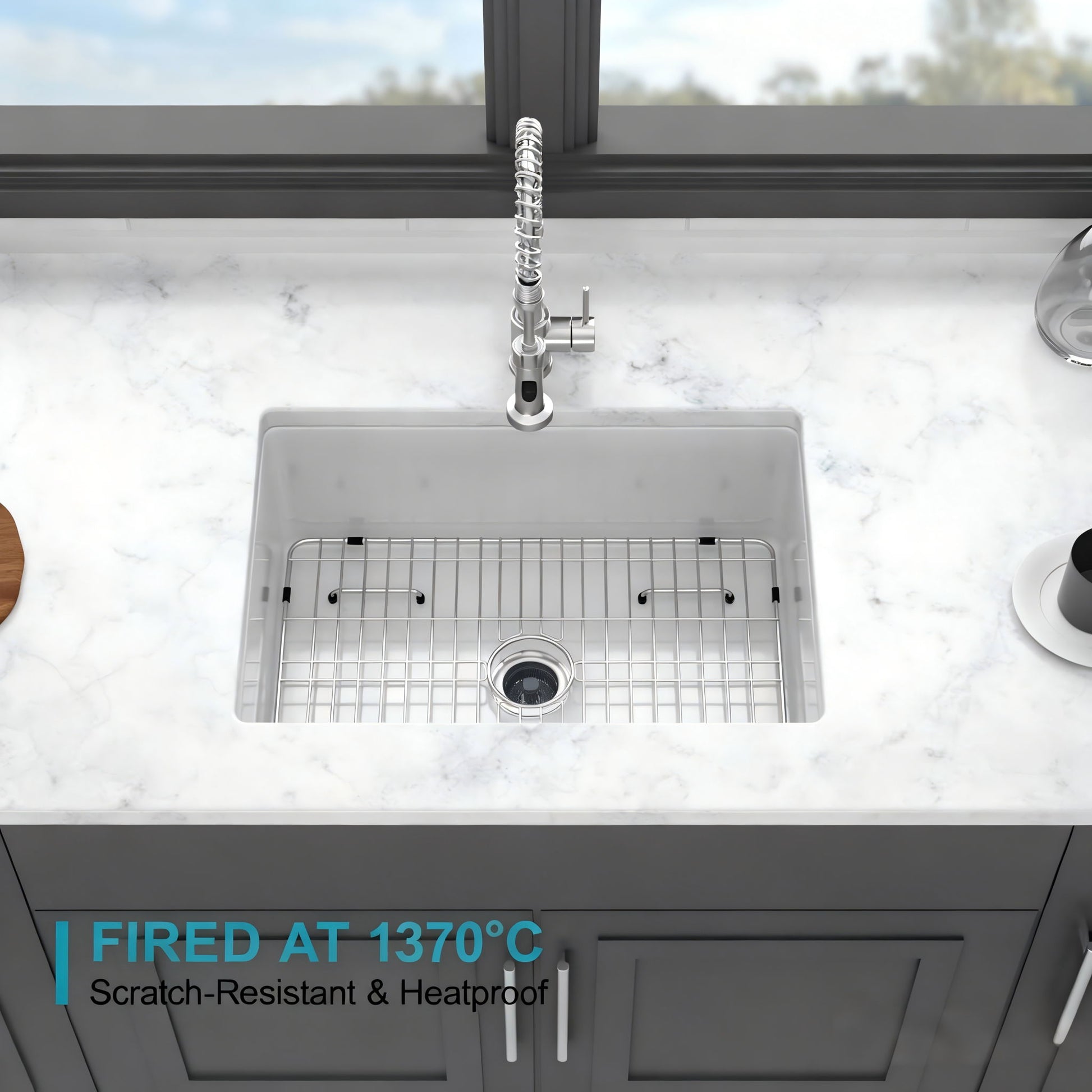 Single Bowl Kitchen Sink, Undermount Or Top Mount Installation - White