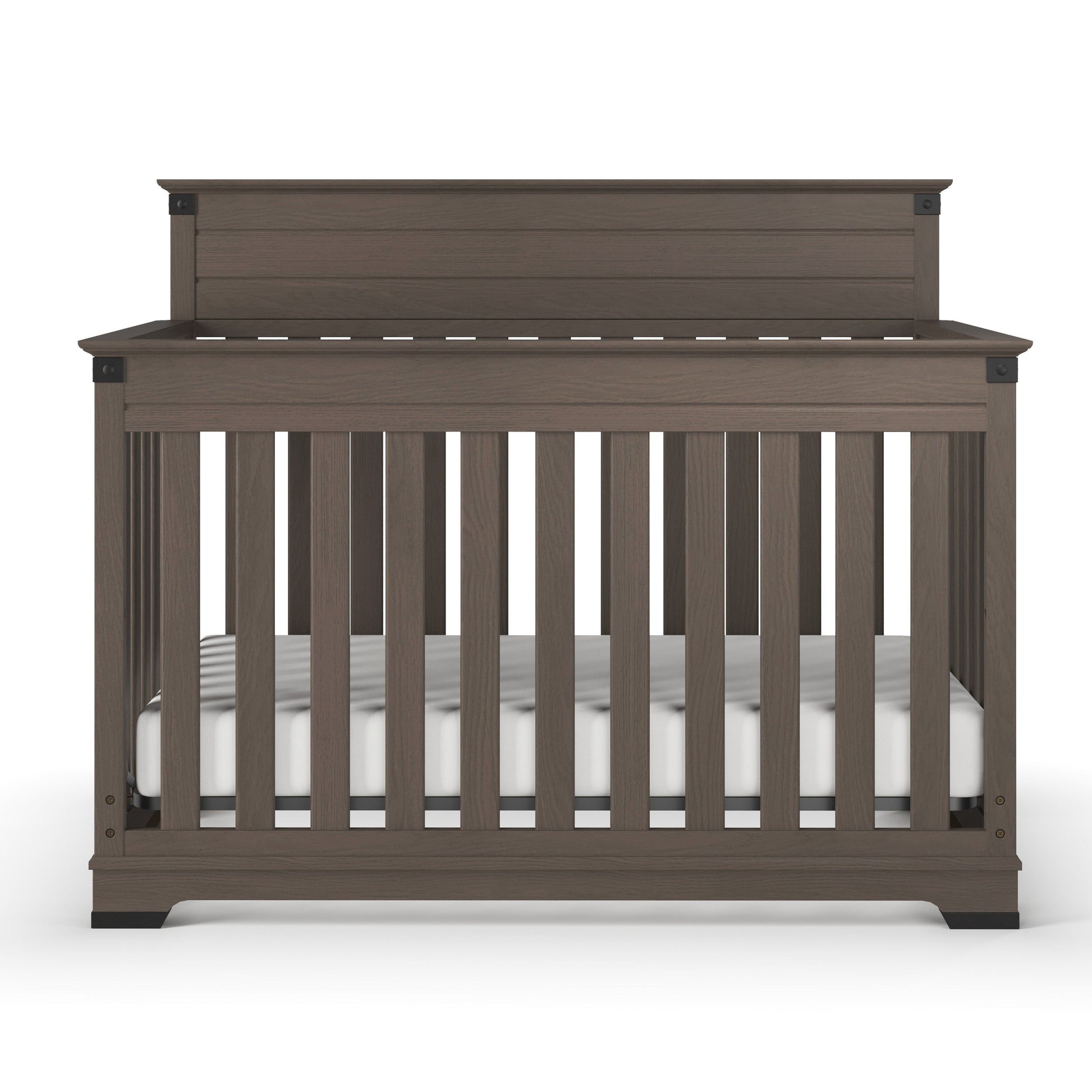 - 4-in-1 convertible crib that transitions through various stages from crib to full bed