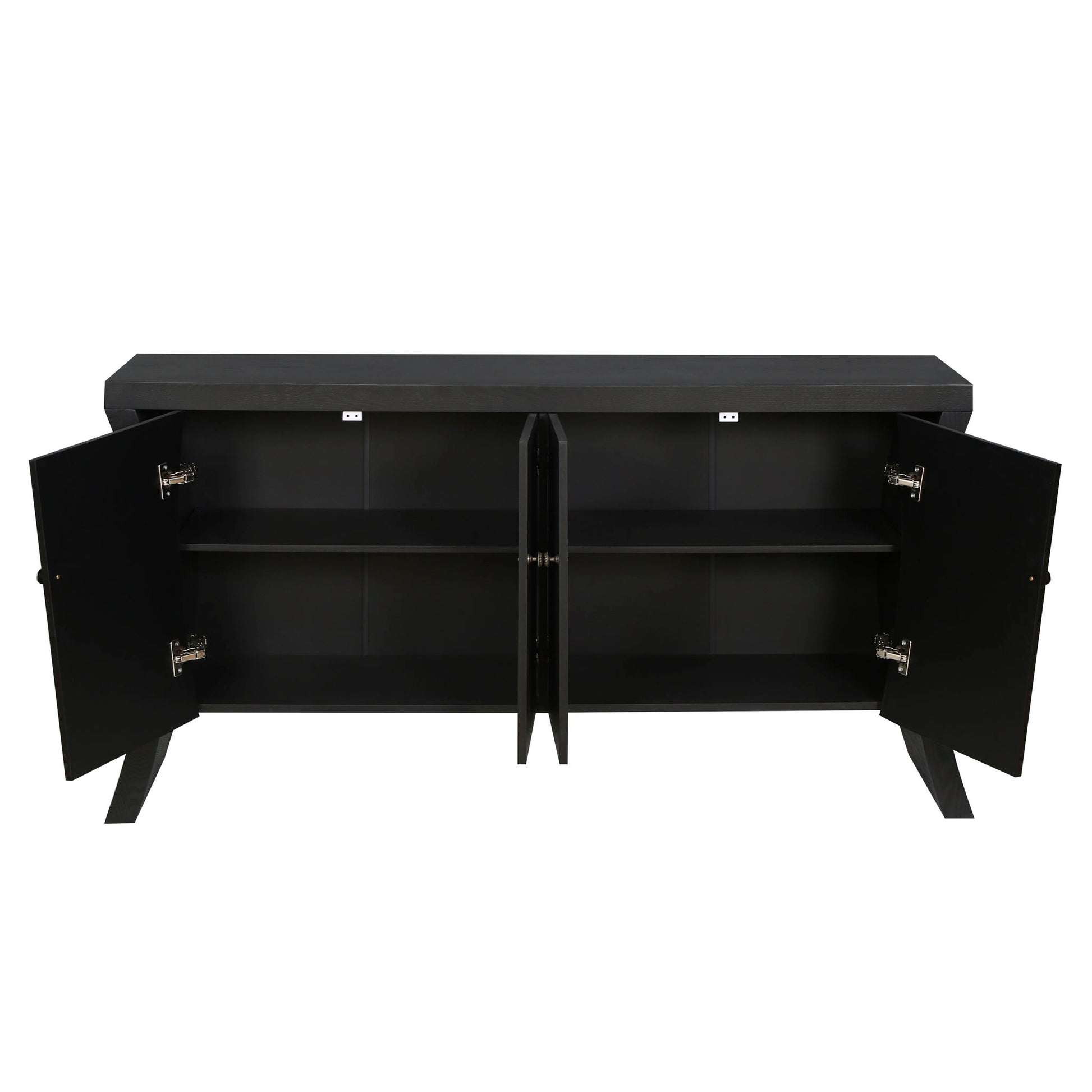 Refined 4 Door Credenza With Arc Legs & Bronze Clasps, Advanced Storage Design - Black