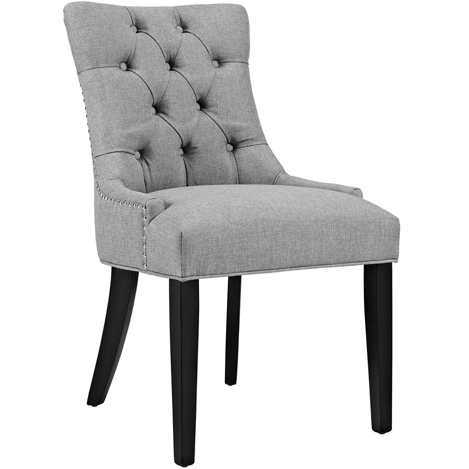 Transport your decor to a simpler time with the Regent Dining Side Chair. Fashioned with a chic and elegant look, this dining chair features finely tufted buttons, studded nailhead trim, and a regal seat generously padded in foam and upholstered in polyester fabric. This comfortable chair comes with non-marking foot caps, tapered wood legs, and works well in both modern and traditional dining rooms.