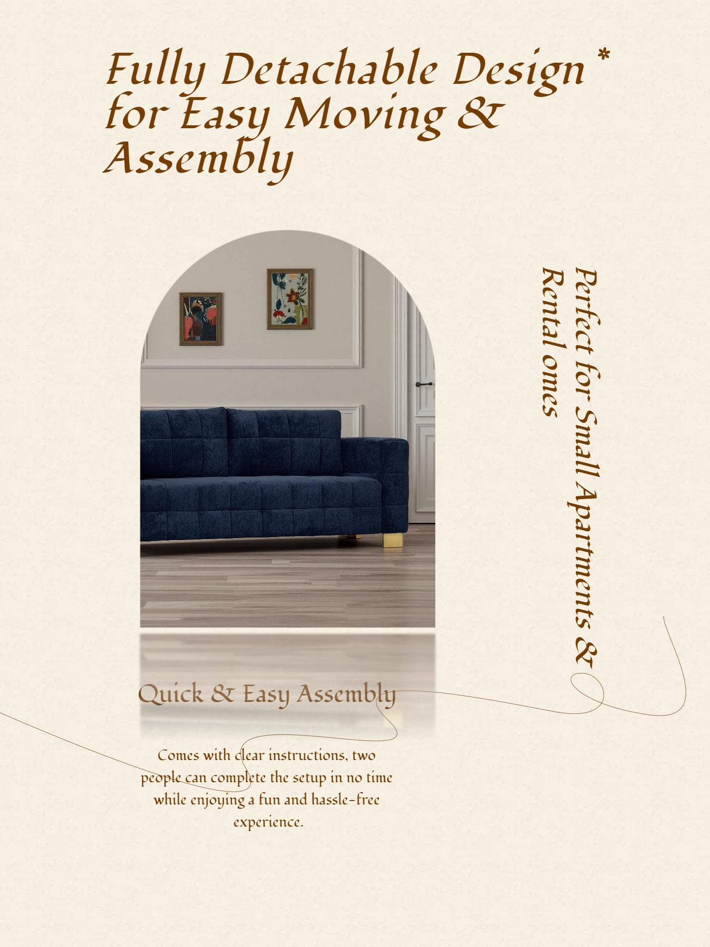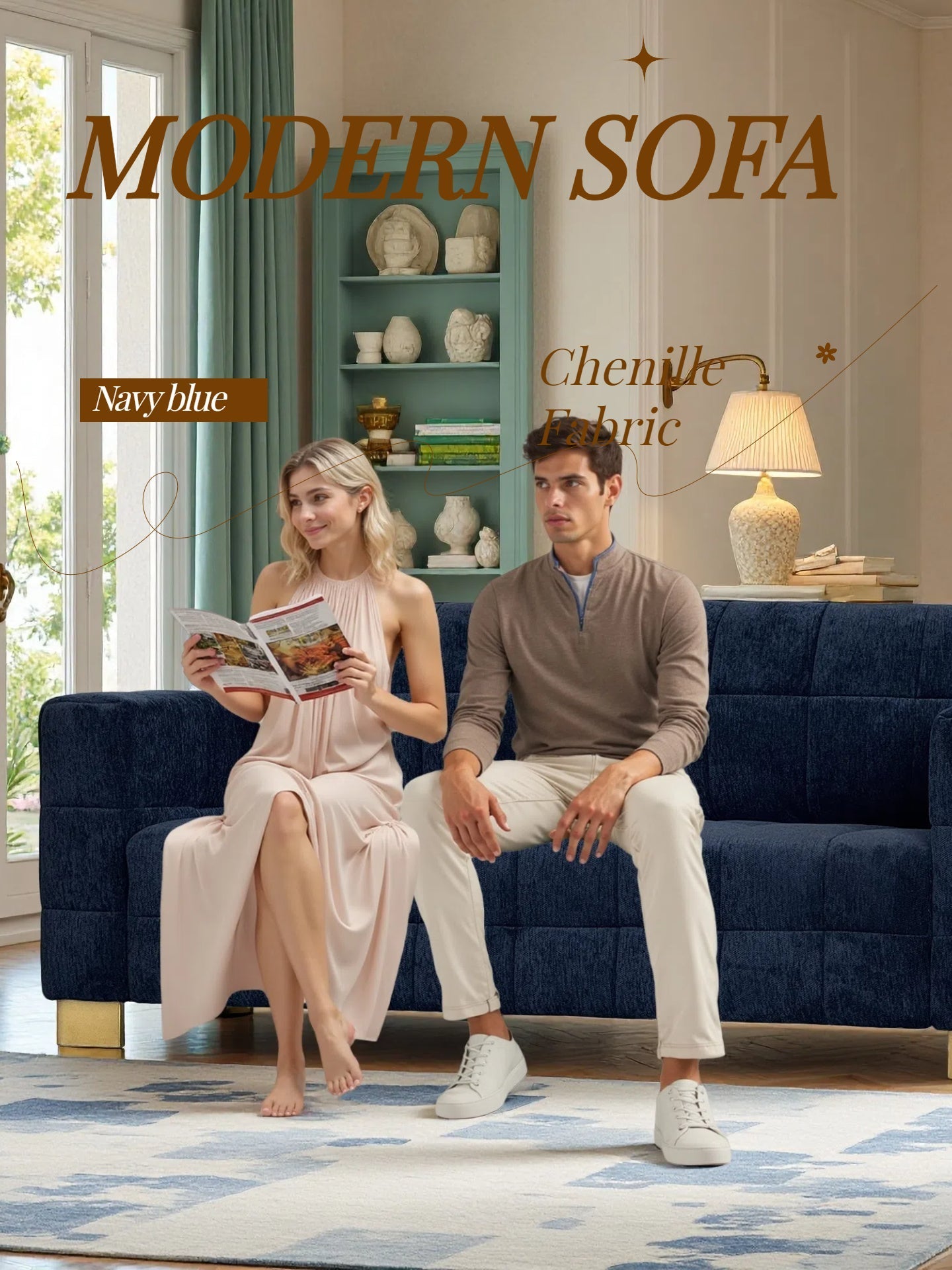 This retro blue chenille upholstered 3-seater couch offers a stylish and comfortable seating solution perfect for living rooms or cozy lounges. Its plush design blends function with a timeless aesthetic.