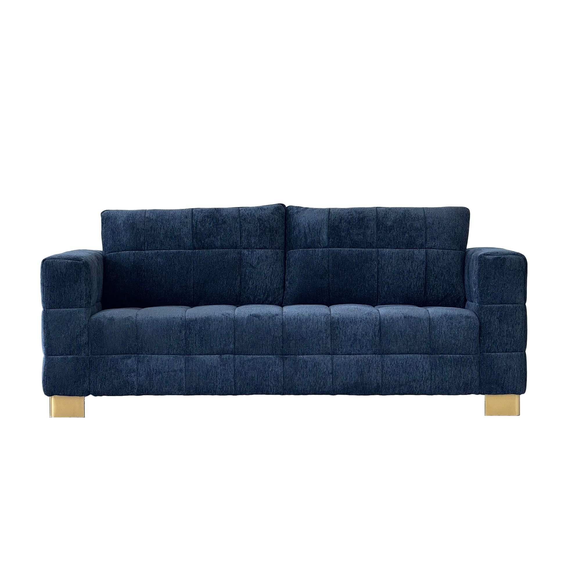 Retro Blue Chenille Upholstered 3-Seater Couch with Stainless-Steel Legs