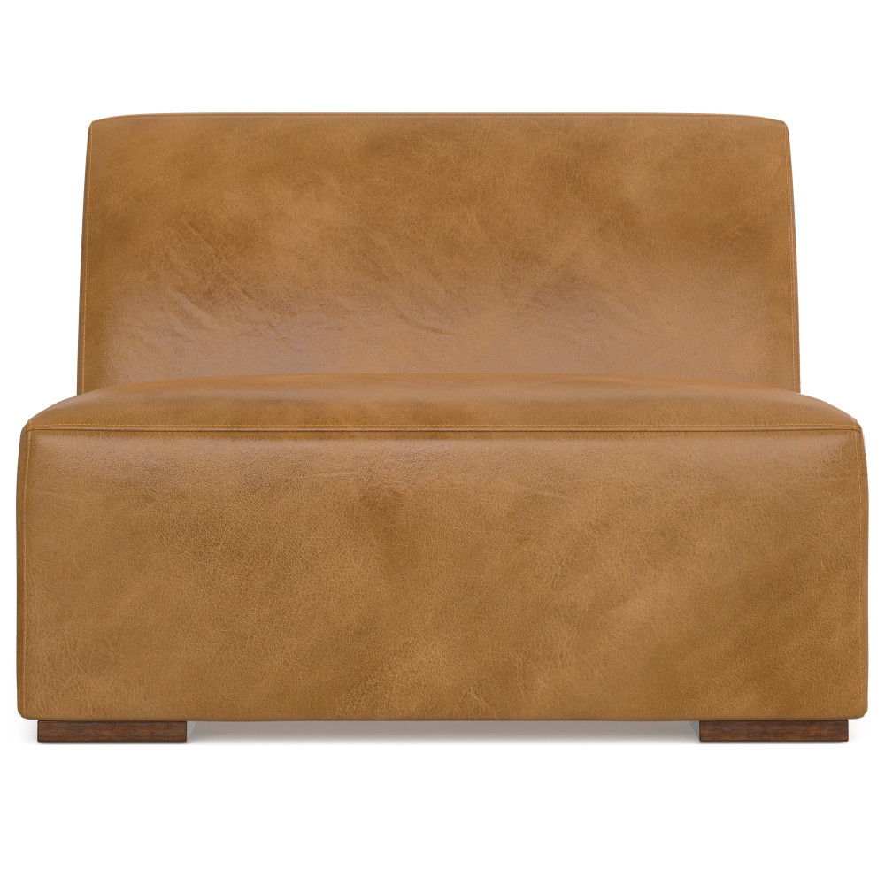 - This modern-style center sofa module with a clean, boxy silhouette and a gently sloping back can be used on its own as an armless chair or combined with other pieces in our handcrafted Rex Modular Sofa Collection; this module accommodates up to 300 lbs.