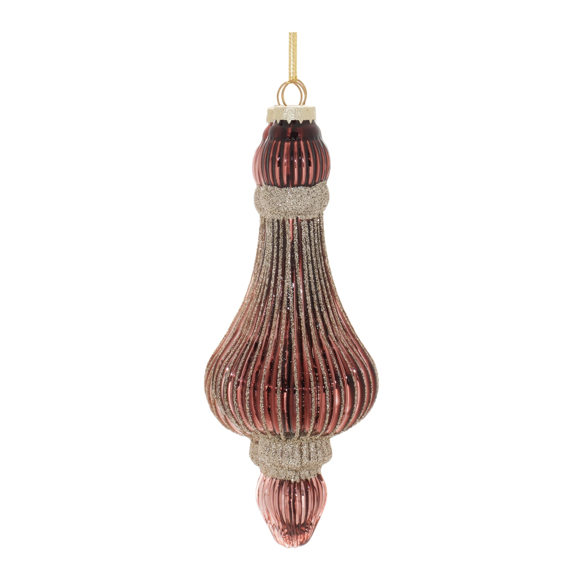 Add a touch of glamour to your holiday décor with these Ribbed Glass Drop Ornaments. Featuring soft pink and mauve tones with delicate glittered touches, these ornaments boast a modern drop design with a ribbed texture that catches the light beautifully. The delicate string hanger and gold ornament cap elevate the sophisticated look, making these ornaments perfect for your Christmas tree, wreaths, or garlands. Sold in a set of 6 with three assorted designs, they bring a chic and festive vibe to any seasonal display.