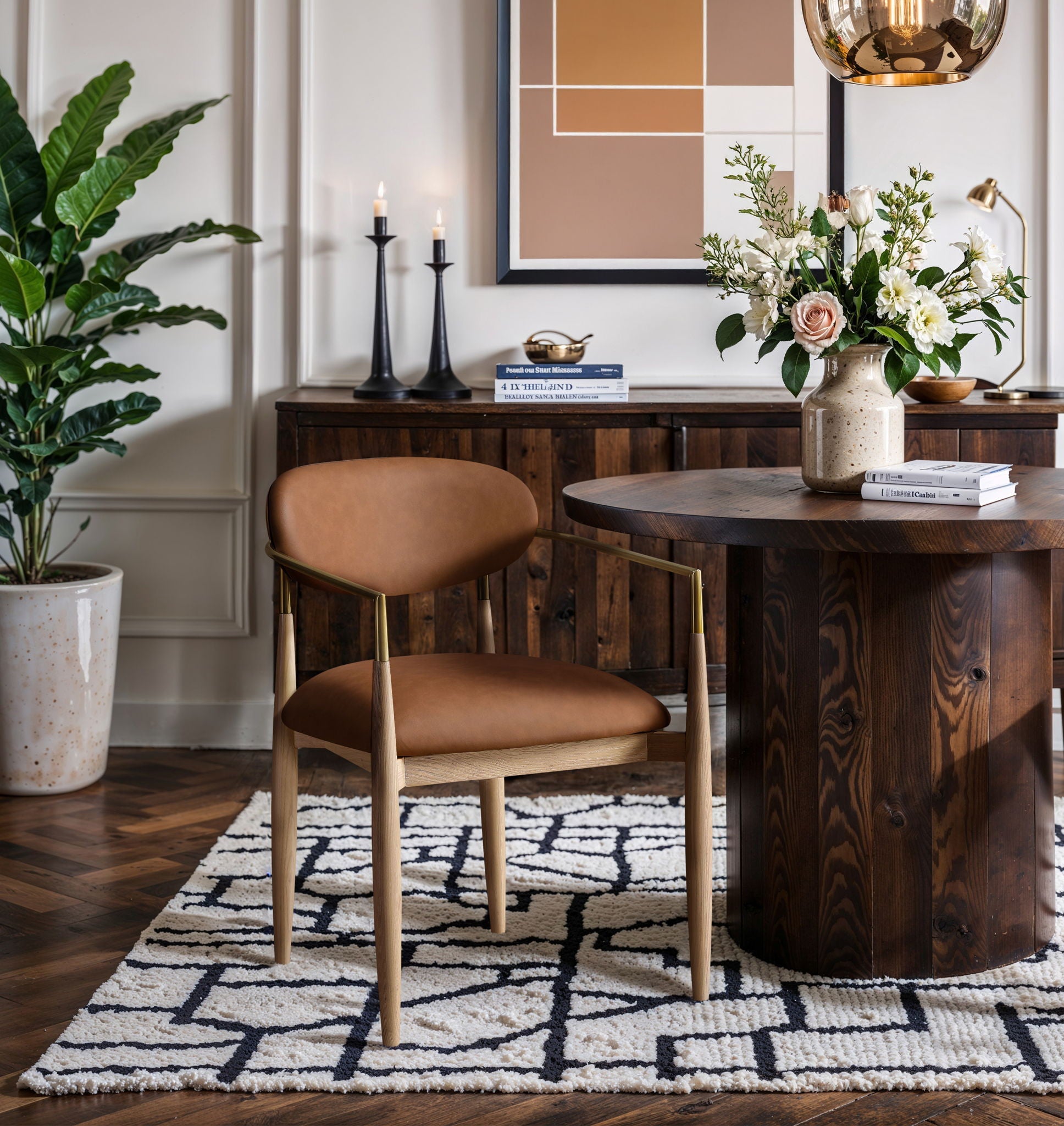 Riccio - Vegan Leather Dining Arm Chair (Set of 2) - Cognac