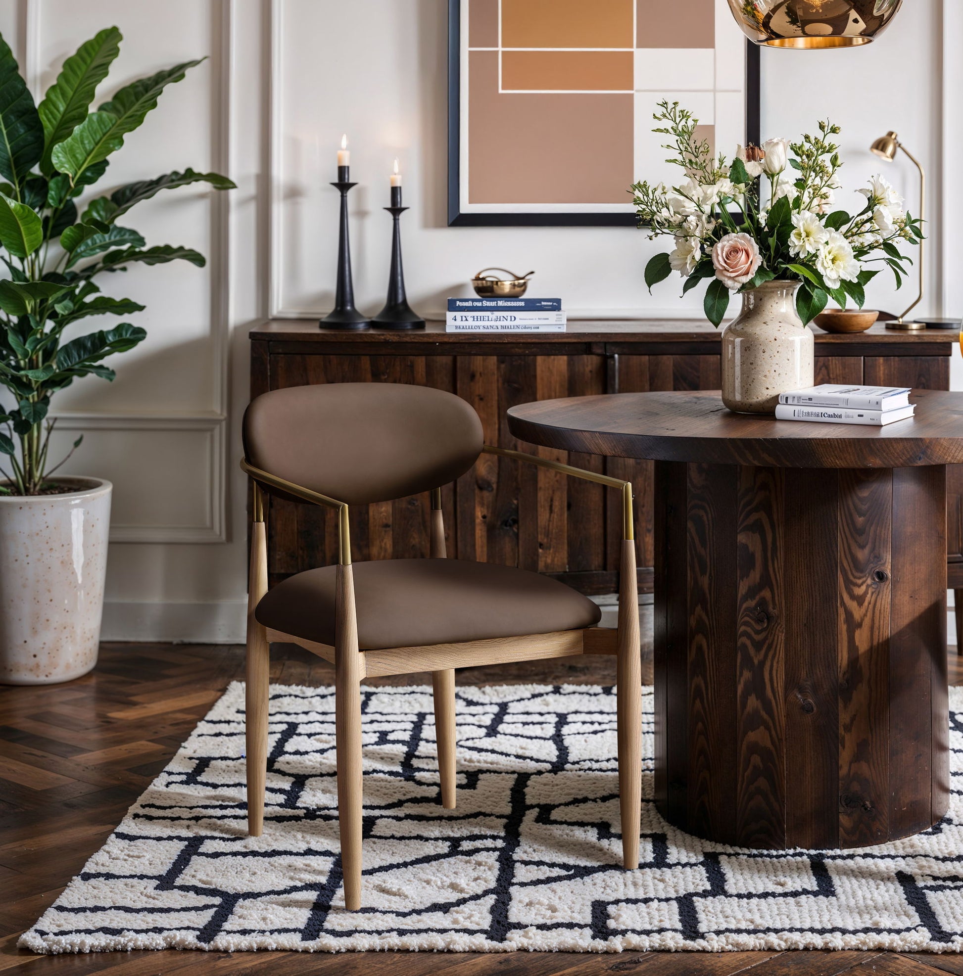 Riccio - Vegan Leather Upholstered Dining Arm Chair (Set of 2) - Brown