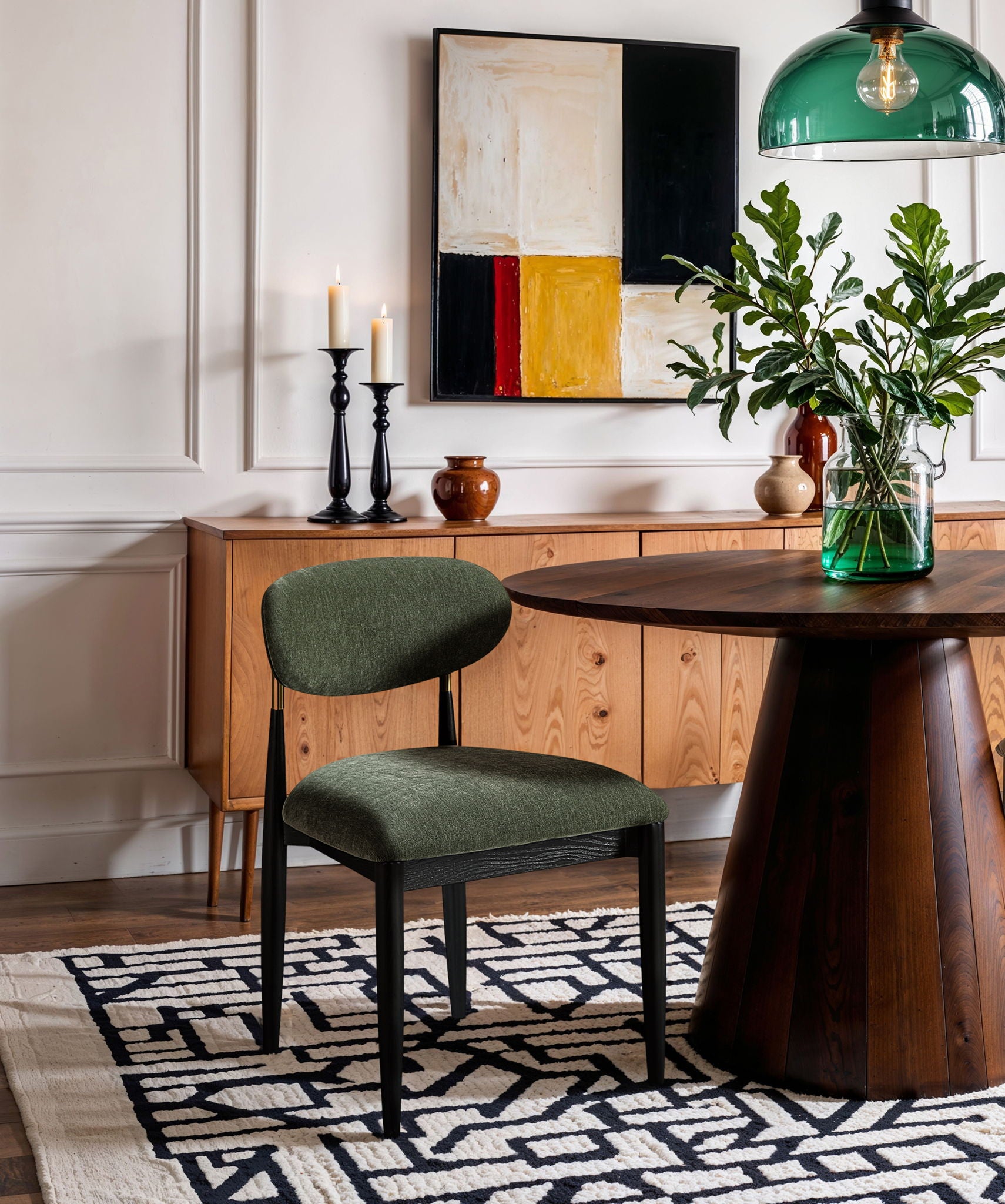 Riccio - Performance Fabric Upholstered Dining Side Chair (Set of 2) With Black Legs - Olive