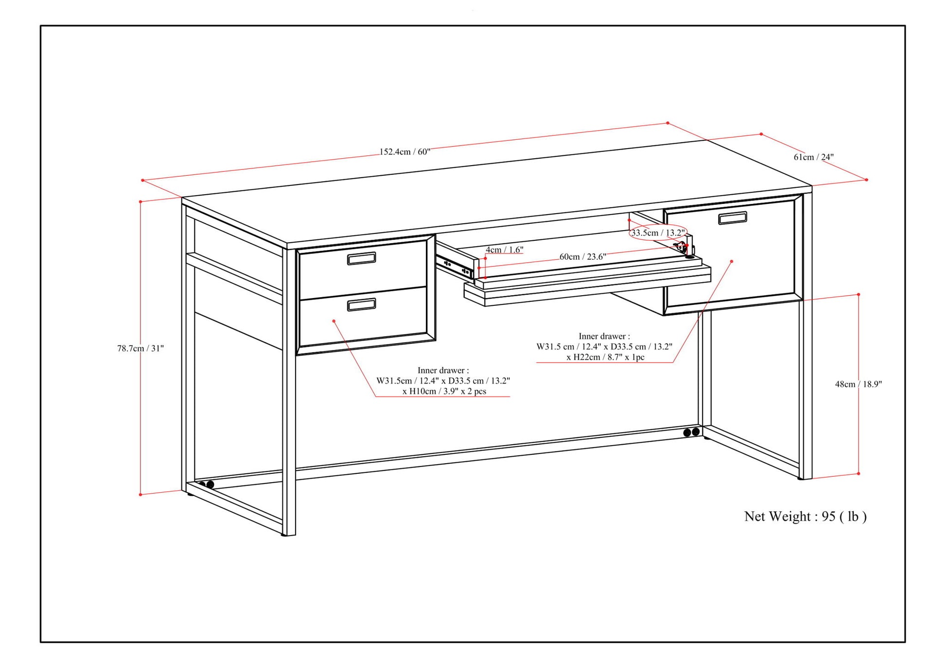 60.0"W x 24.0"D x 31.0"H - 94.8 lb