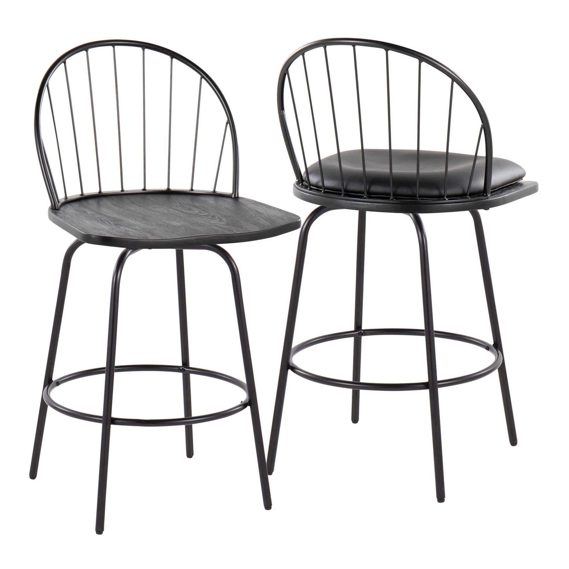 Riley - Claire Farmhouse Fixed Height Counter Stool With Swivel With Round Footrest (Set of 2) - Black