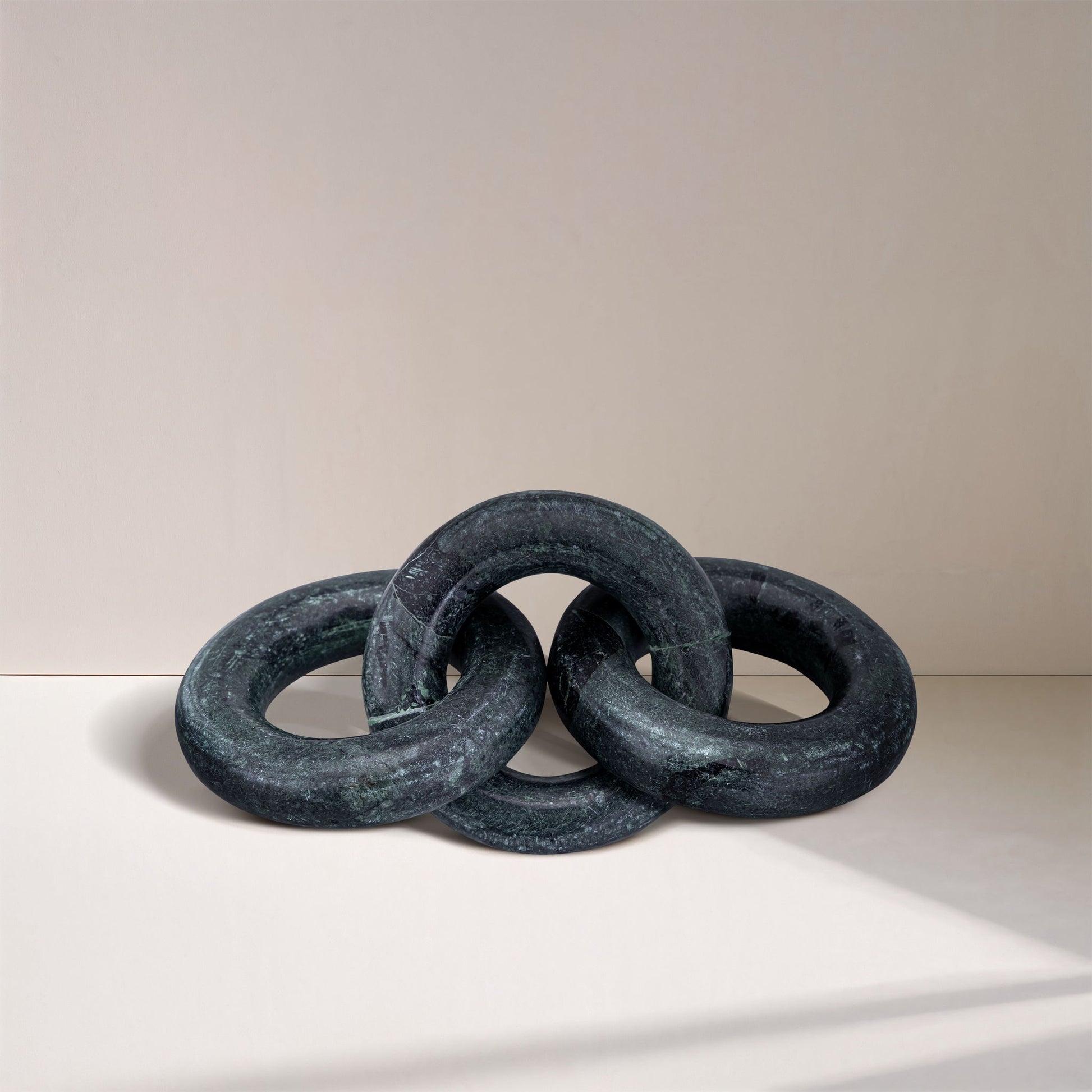 Carved from genuine capri marble, the Rings decorative chain link blends organic texture with sculptural flair. Each handcrafted link showcases natural veining and warm earthy tones, making every piece beautifully one of a kind. Whether styled solo or layered into a vignette, it adds instant depth and art deco charm to any surface.