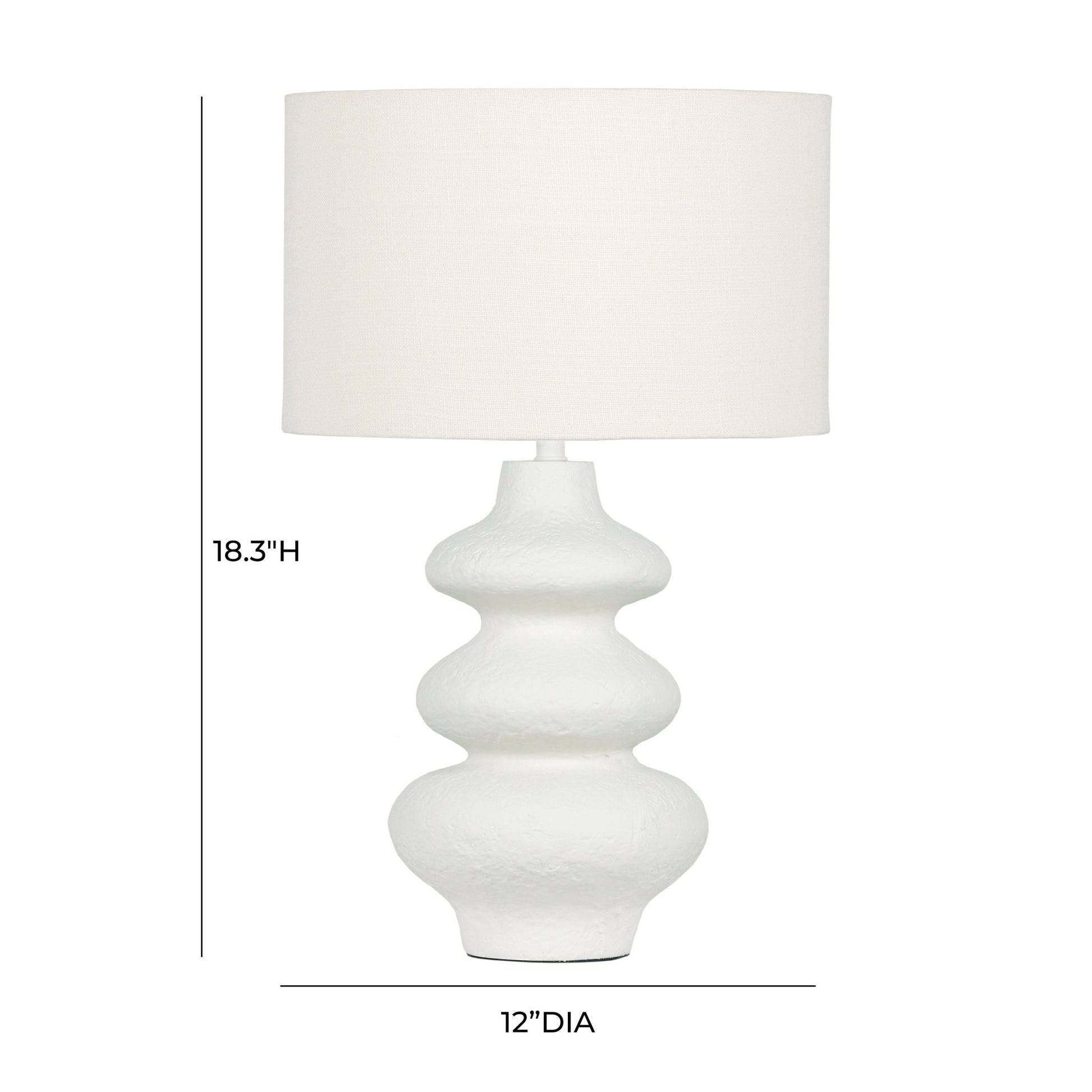Illuminate your space with the Riviera Textured Table Lamp, featuring a biomorphic surface texture crafted from handformed fiberglass. The lamp's 'wavy' silhouette and perfect proportions create a striking visual appeal, making it a versatile addition that seamlessly fits into any corner of your home. Elevate your decor with this unique and stylish lamp that adds both texture and personality to your living space.