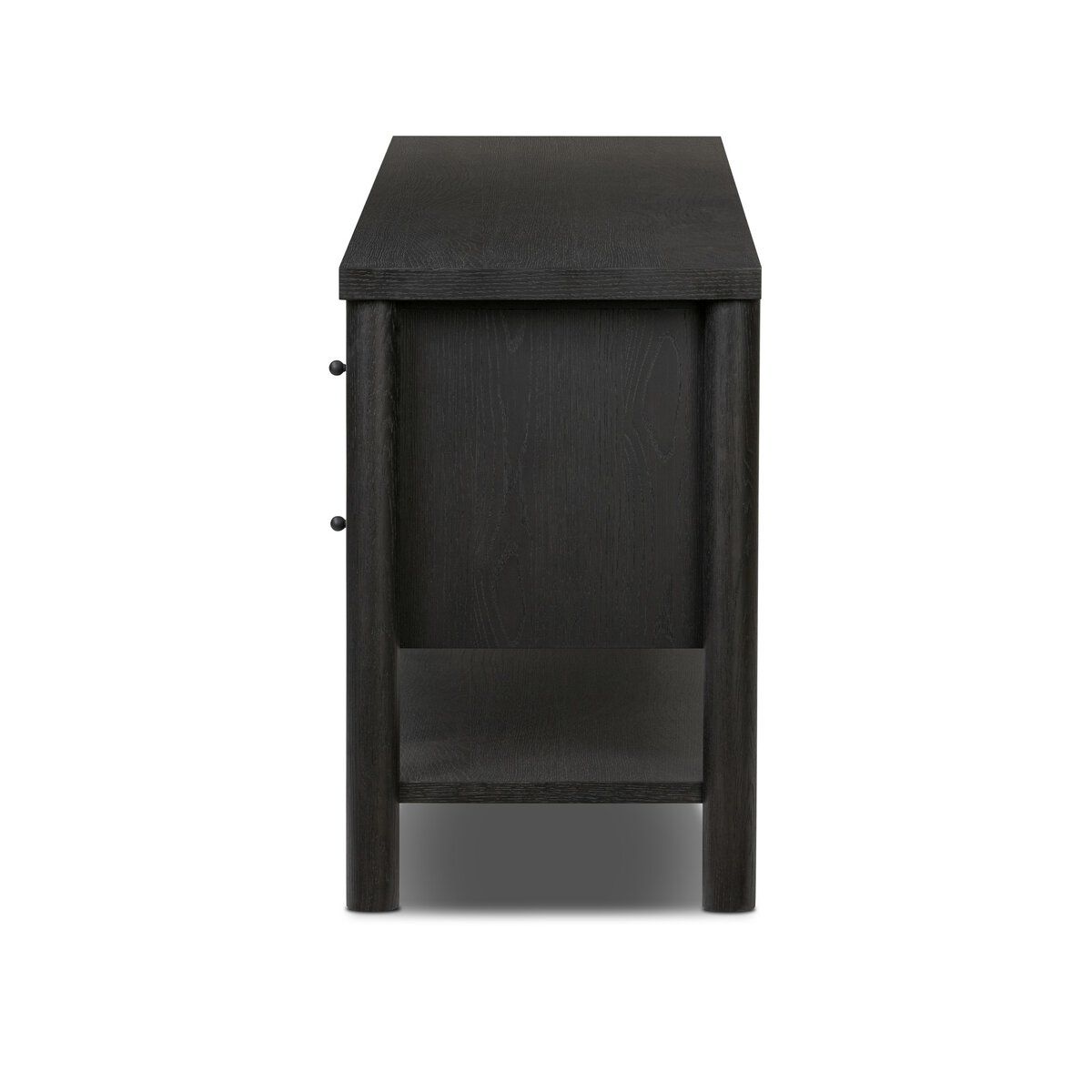 Designed with both style and practicality in mind, this media console features understated gunmetal-finished hardware that complements the dark wood tones. Integrated drawers and a generous lower shelf offer ample storage for media components and everyday essentials, making the Roark a sophisticated anchor for contemporary interiors.