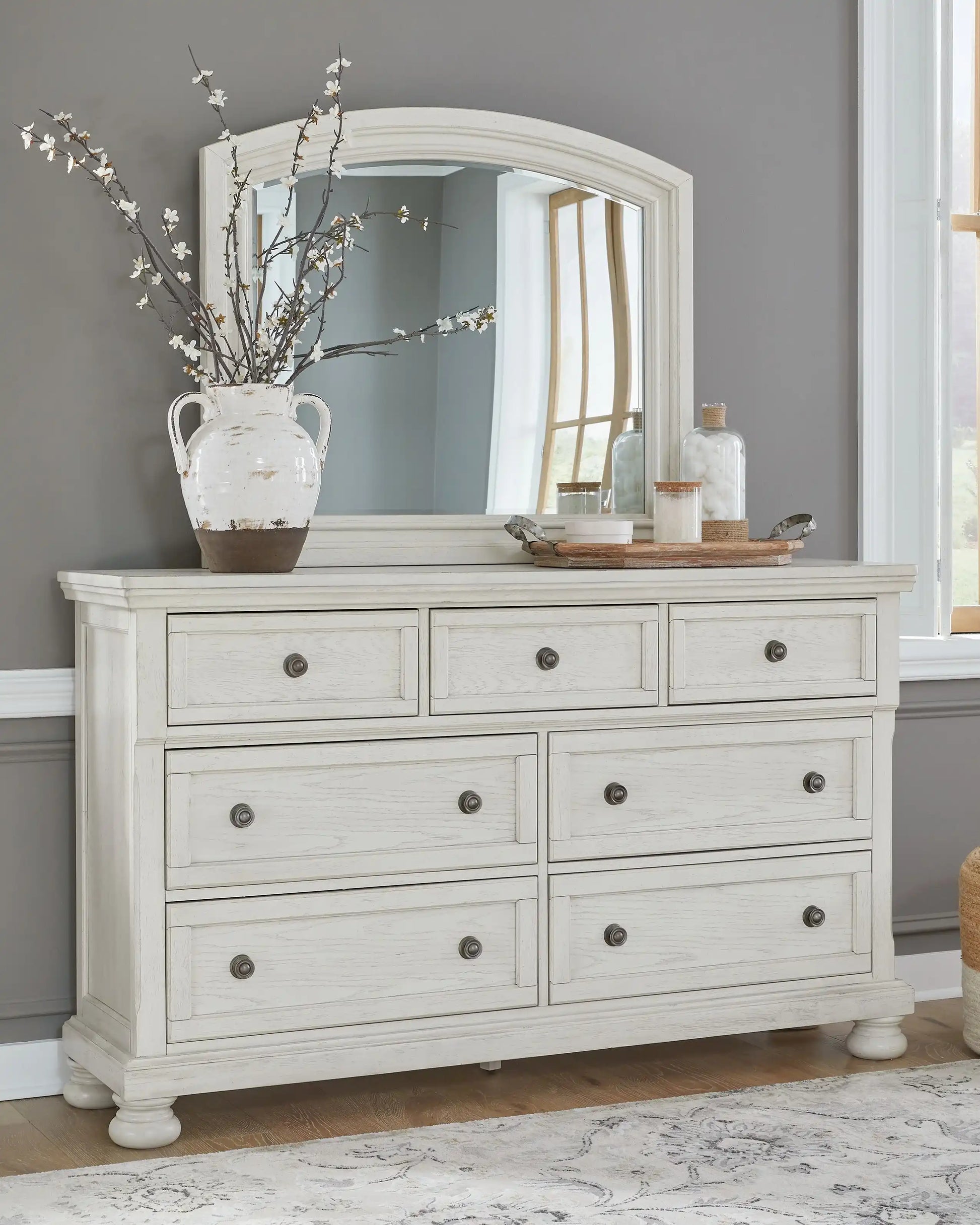 Robbinsdale - 5 Pc. - Dresser, Mirror, Queen Panel Storage Bed - Antique White