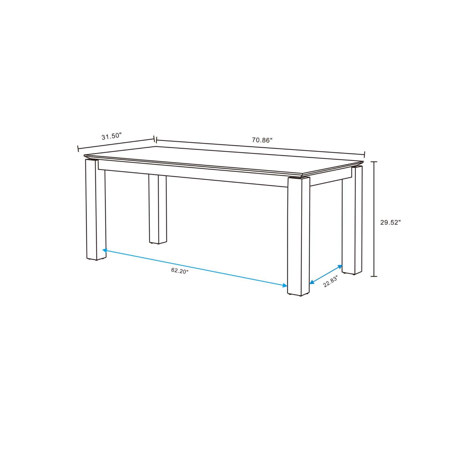 70.86"W x 31.49"D x 29.52"H - 96.0 lb
