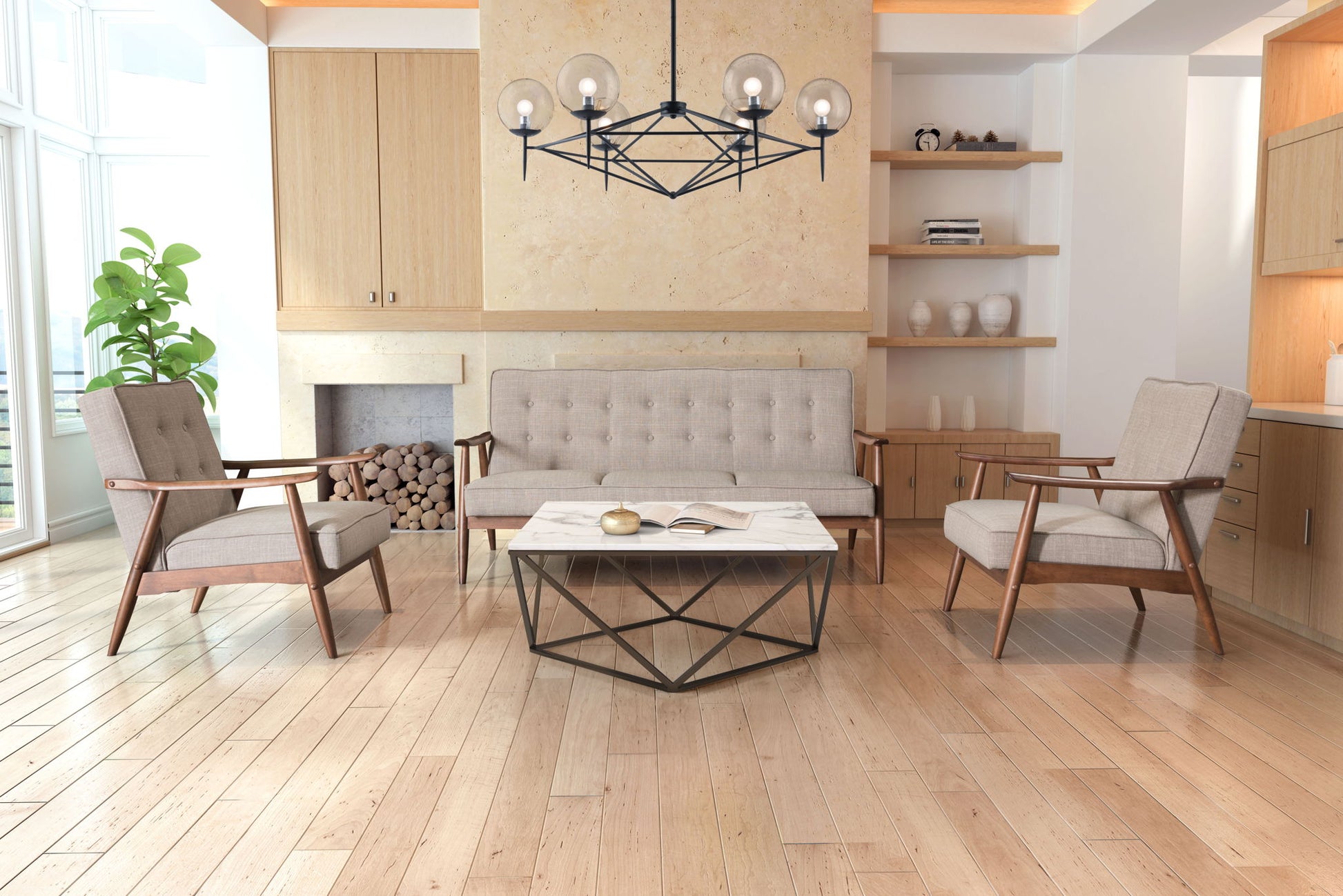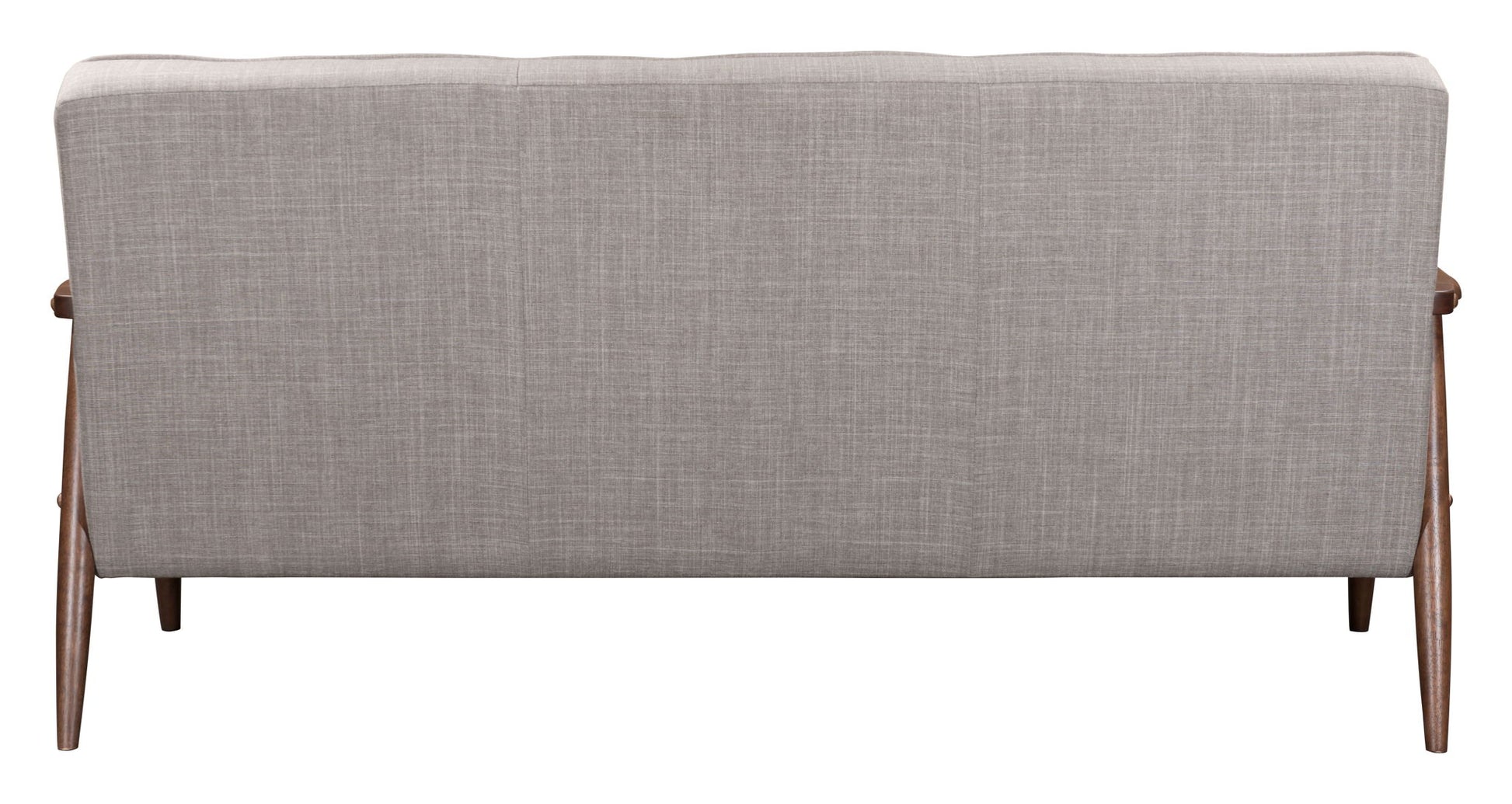 Add sleek simplicity to any living space with our Rocky three-seat modern sofa in soft. Perfectly pitched for comfort with its sturdy, solid wood frame, angular legs and sloped arms. Both the seat back and seat cushion is button tufted with a self-welt. Pair this handsome, compact sofa with the matching Rocky Arm Chair (sold separately) to complete your room.