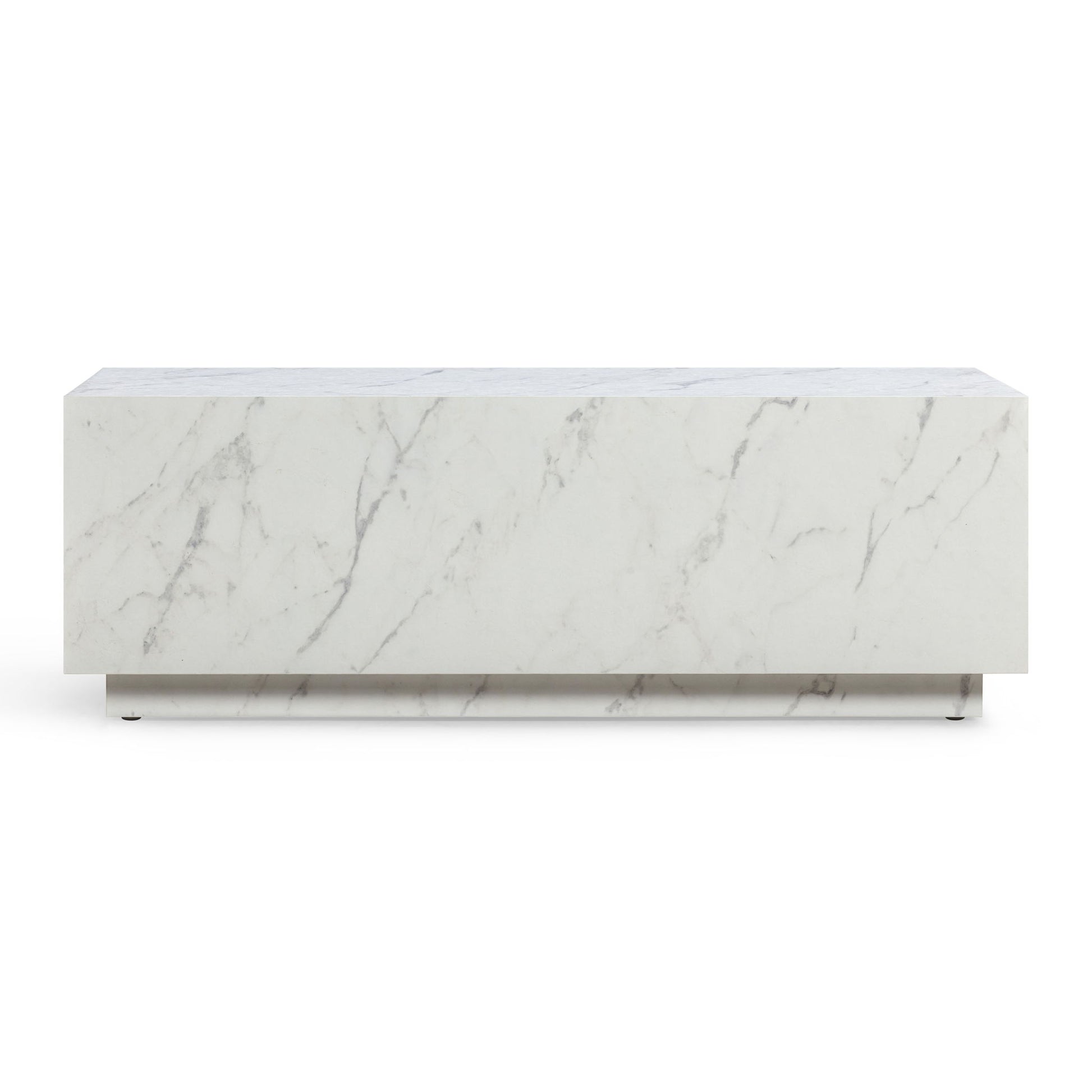 Streamlined and versatile, the Romy Table anchors your space with bold simplicity. Offered in faux wood, white marble, or cream travertine finishes, its wipe-clean surfaces balance high-style with low-maintenance practicality. Use one for a minimalist statement or pair two together to create a striking oversized square perfect for grounding a large sectional.