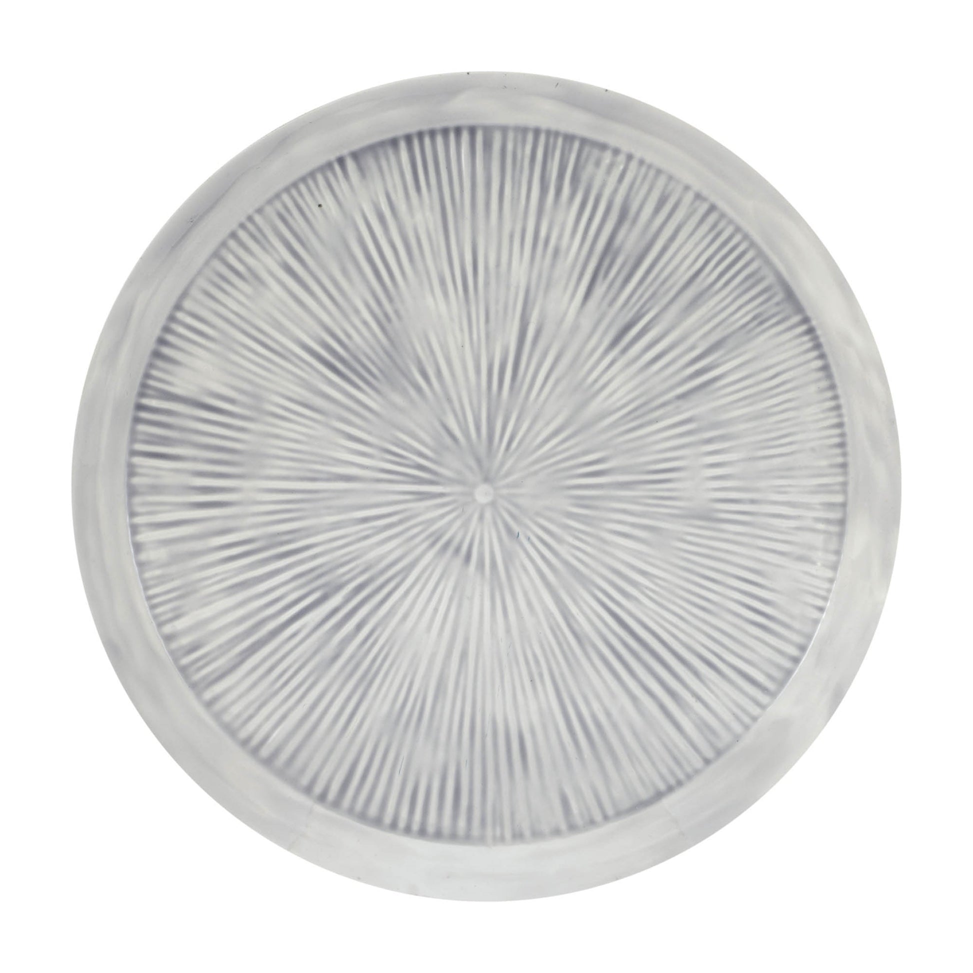 Add a statement piece to your décor with this round etched metal tray. Featuring an earthy green tone with a distressed painted design and glossy glazed finish, this tray offers a modern yet rustic charm. The textured starburst design adds visual interest and sophistication, making it the perfect addition to your coffee table, end table, or kitchen. Use it to display a set of vases, candles, or novelty décor for a unique touch, or fill it with fresh fruit or sweet treats when entertaining guests. A versatile and stylish tray that complements any décor style.