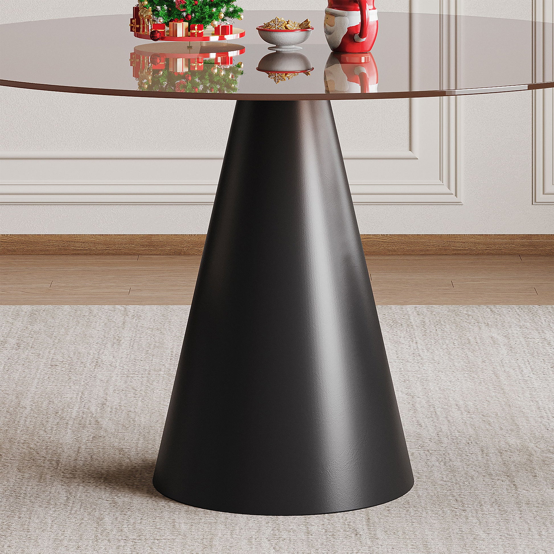 Round Glass Dining Table With Tempered Glass Top, For 2 - 4 People, Apartment And Restaurant Use - Black / Brown