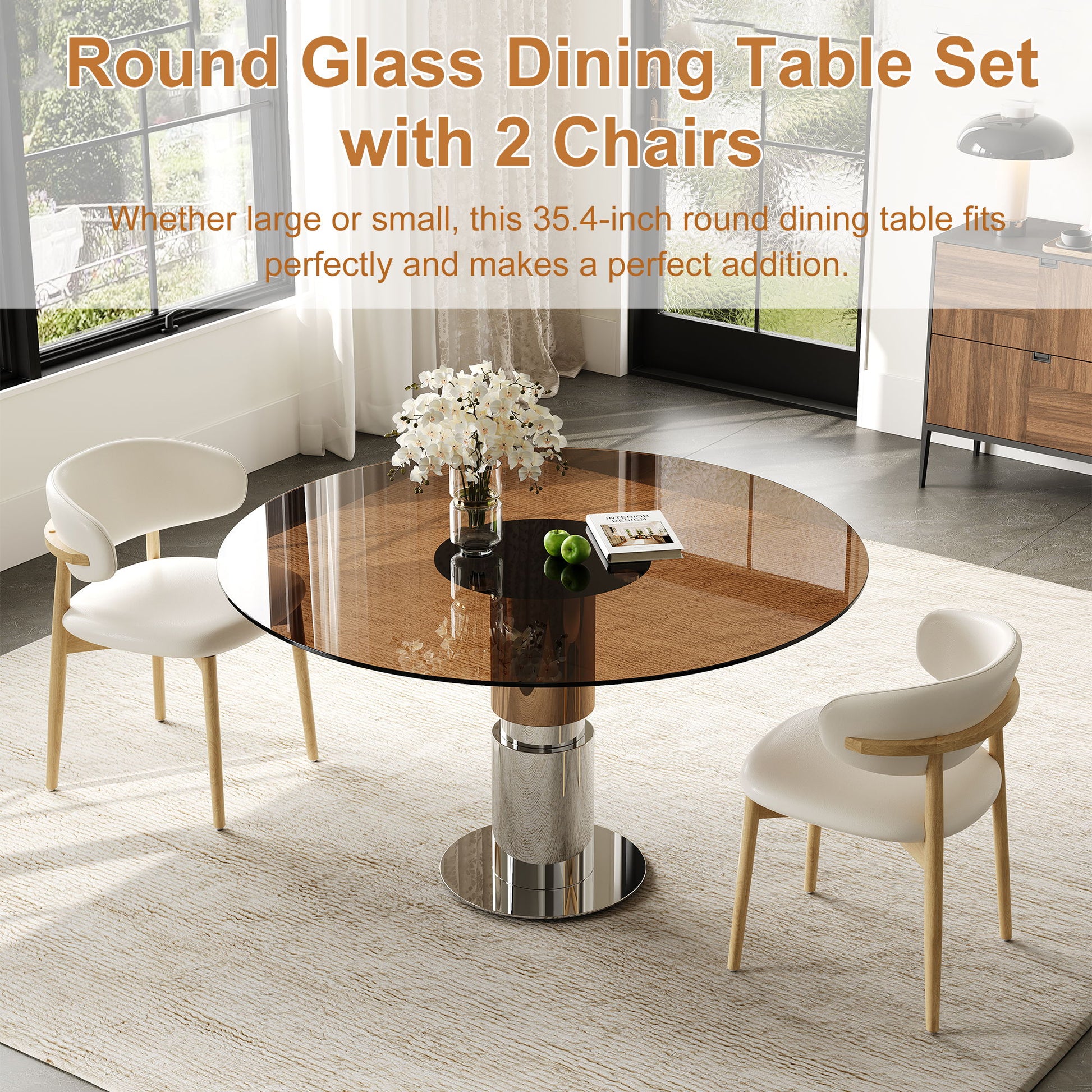 Round Dining Table With 2 Chairs For Home And Restaurant Use - Brown