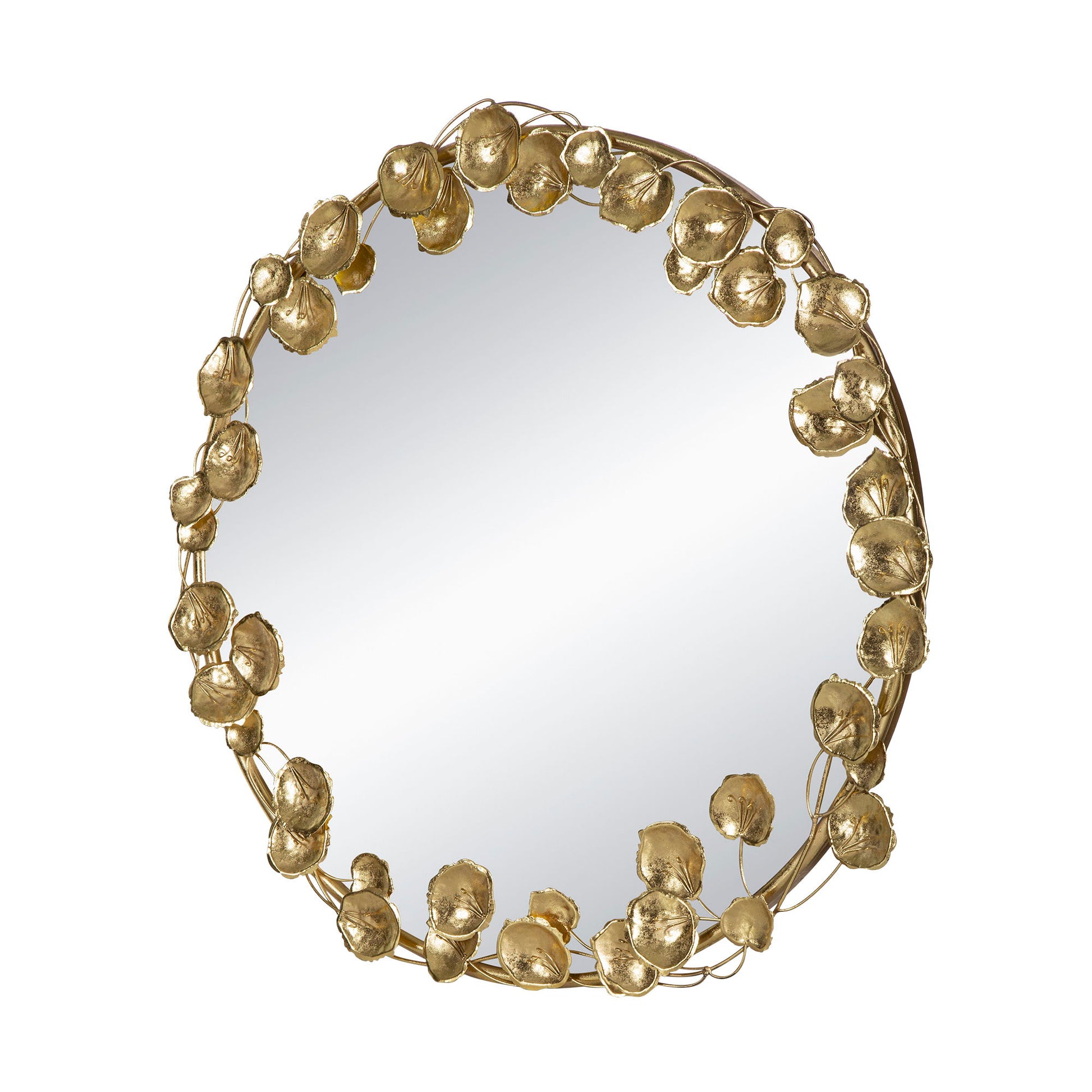 Round Metal Wall Mirror With en Leaf Accents, Modern Decor Mirror For Living Room Entryway Hallway - Gold