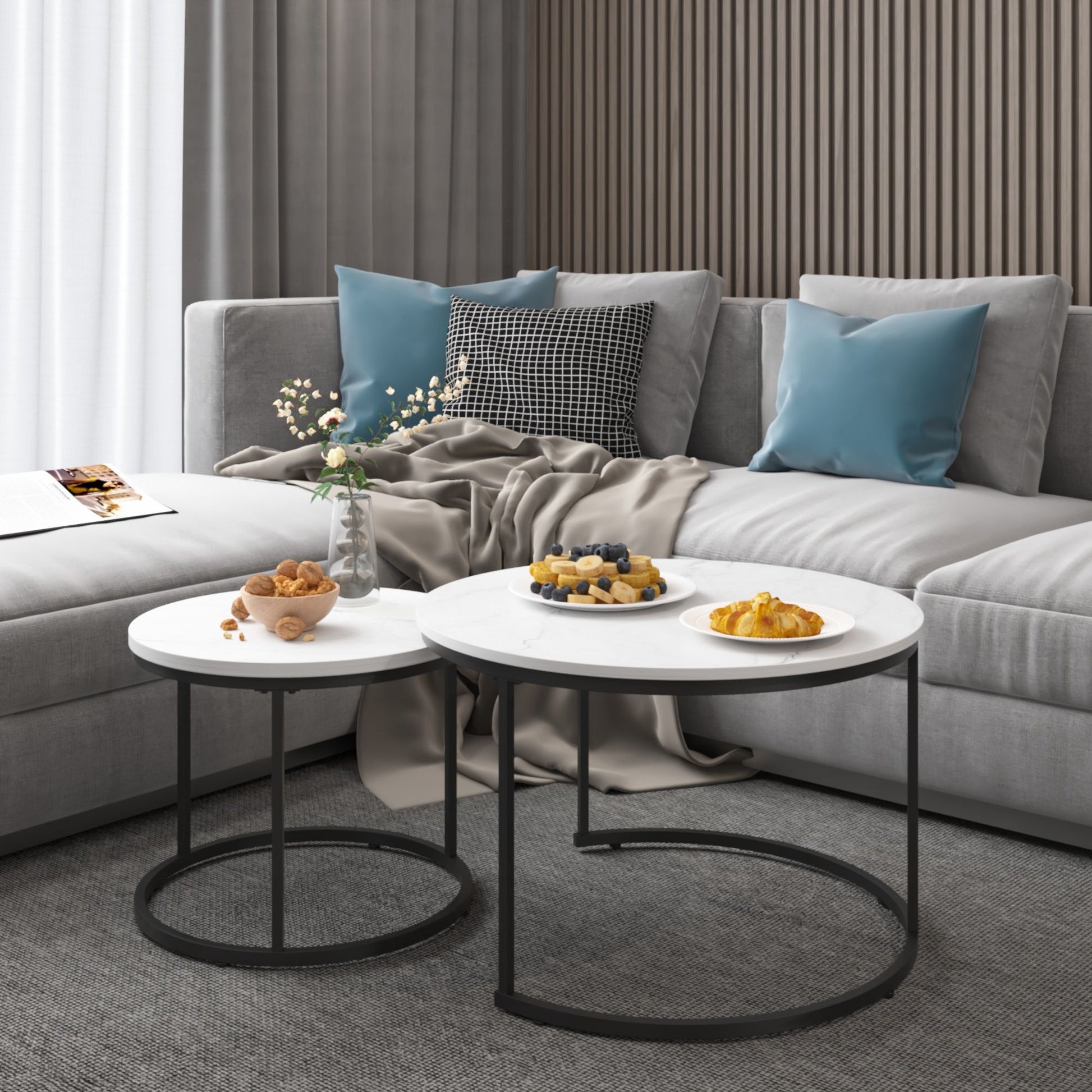 Round Nesting Coffee Table For Living Room (Set of 2) - White