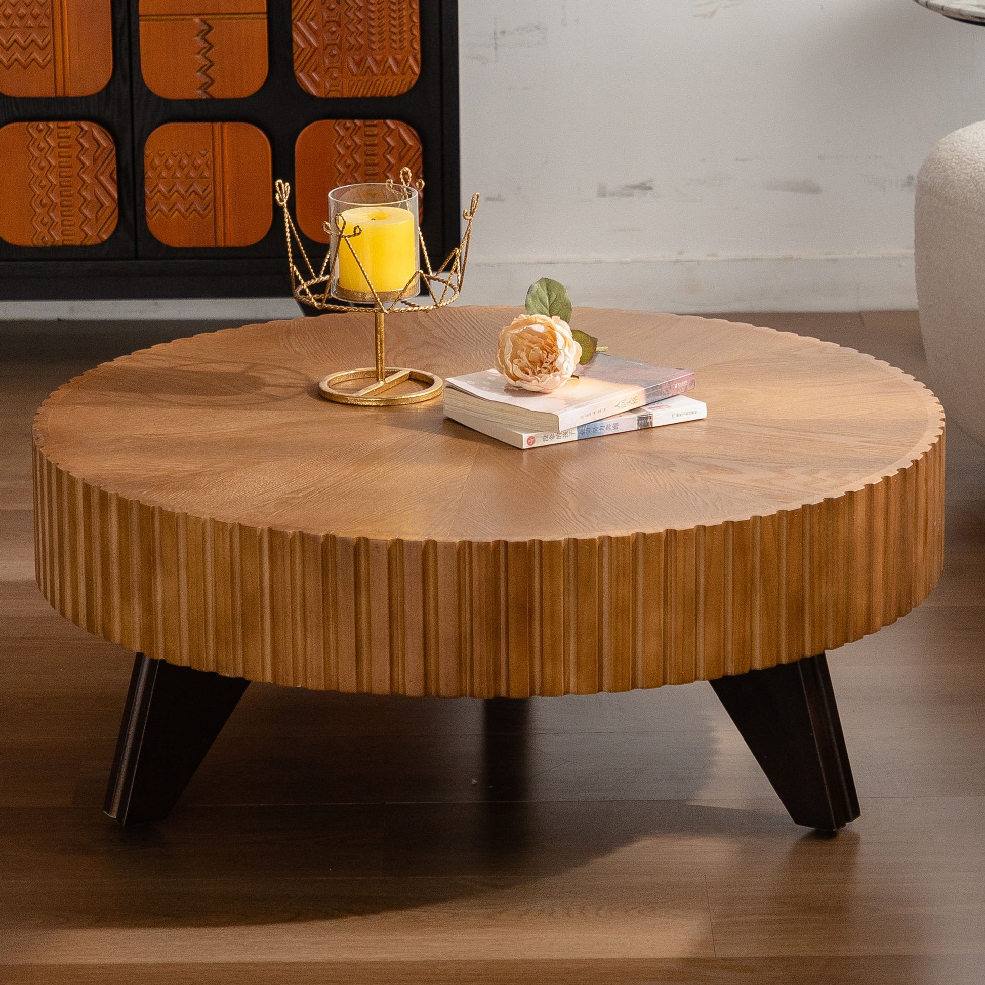 Round Retro Coffee Table For Living Room Decor And Daily Use - Natural