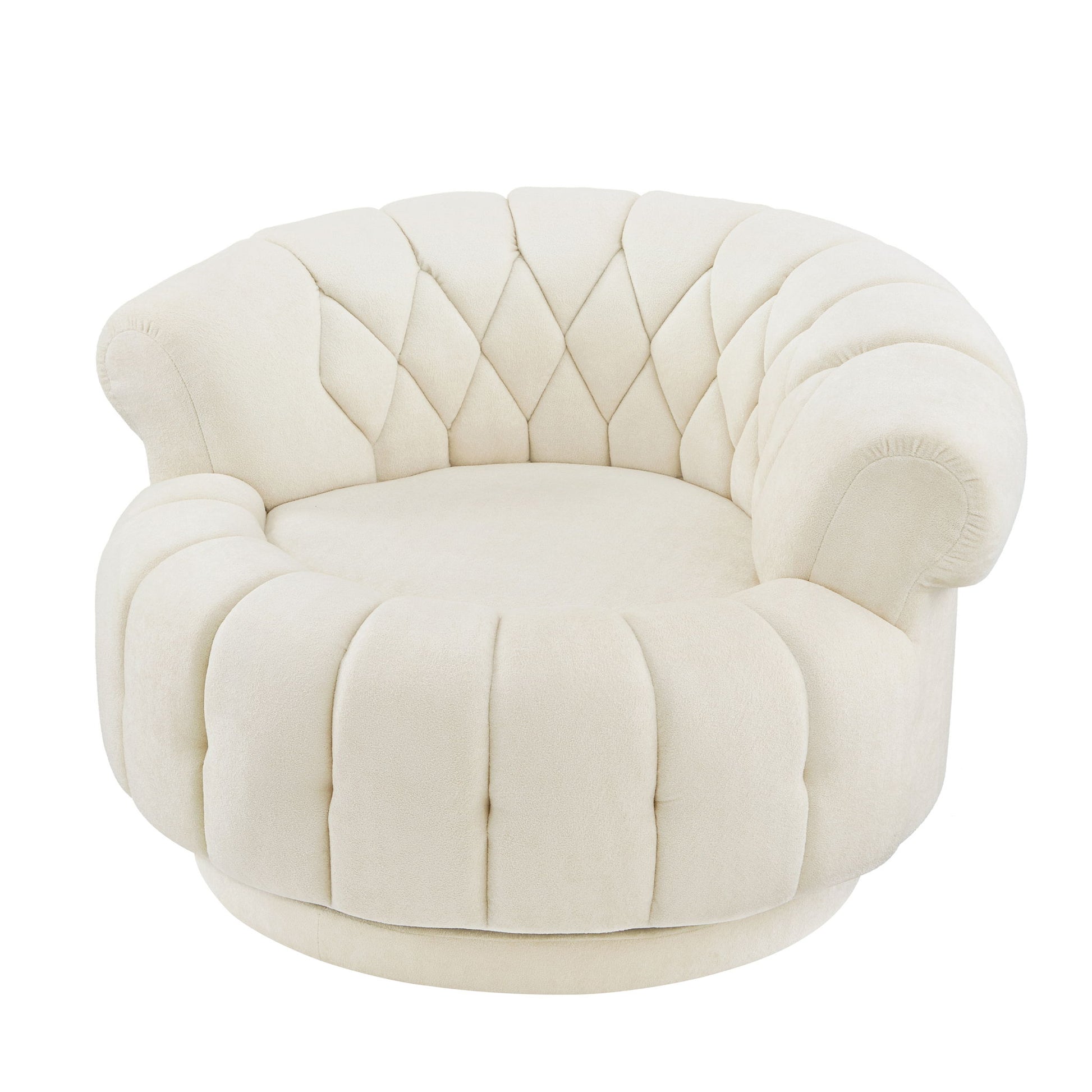 Round Club Swivel Accent Chair With Rotation For Living Room - Beige