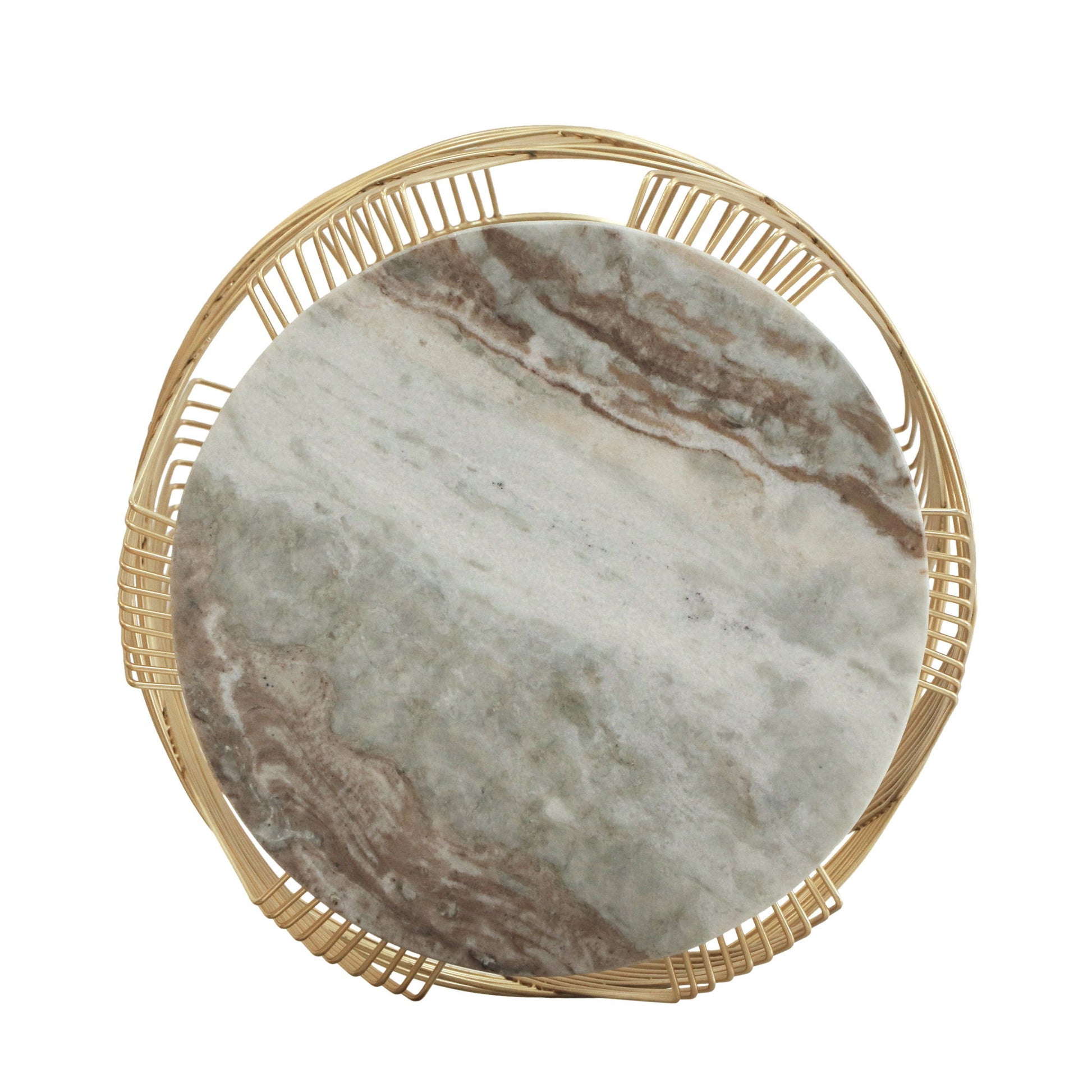 Round Table With Marble Top And Metal Base - Gold / Natural