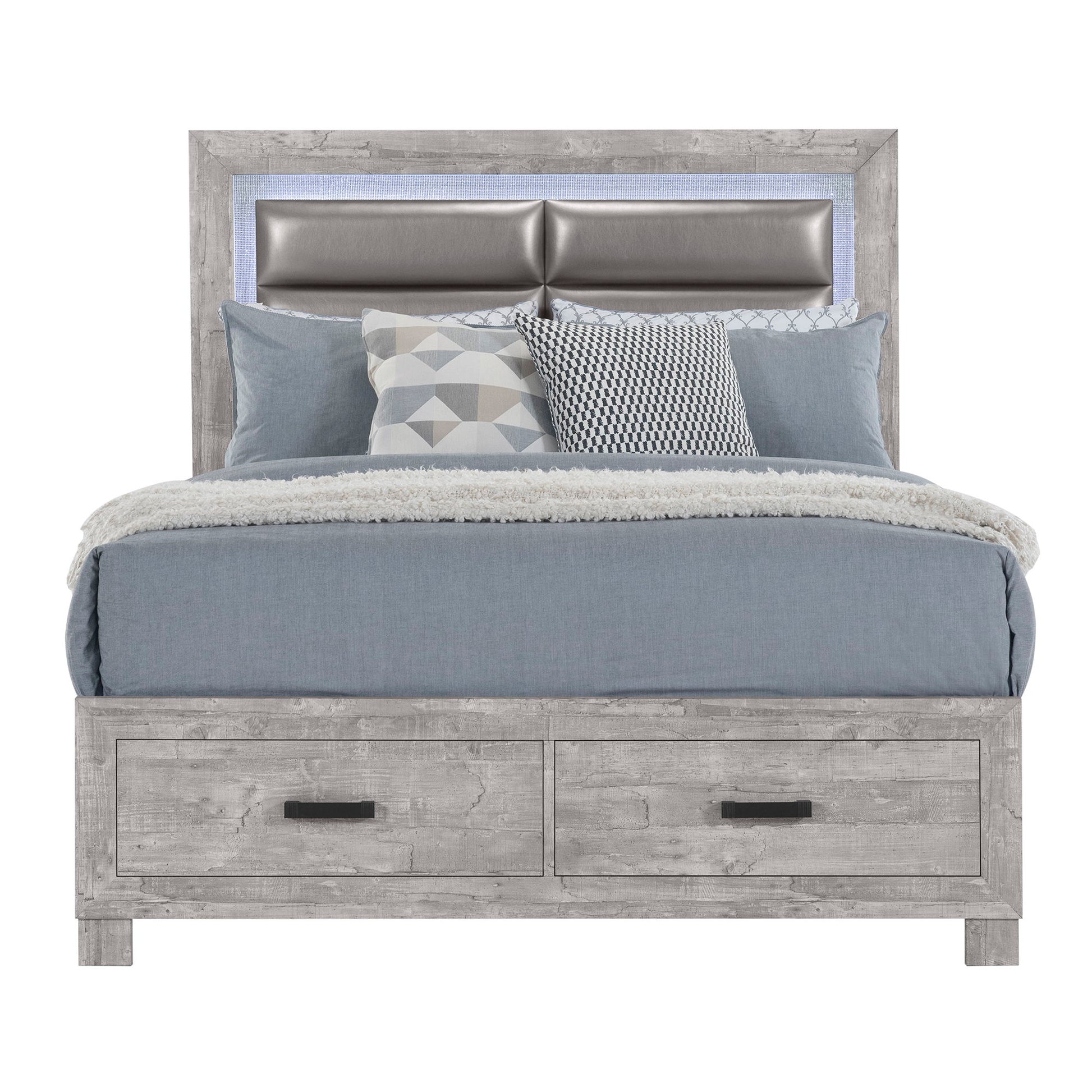 - LED Accent Lighting: The headboard is enhanced with LED accent lighting, offering a soft glow for added ambiance and functionality, with power controls on either side for easy access.