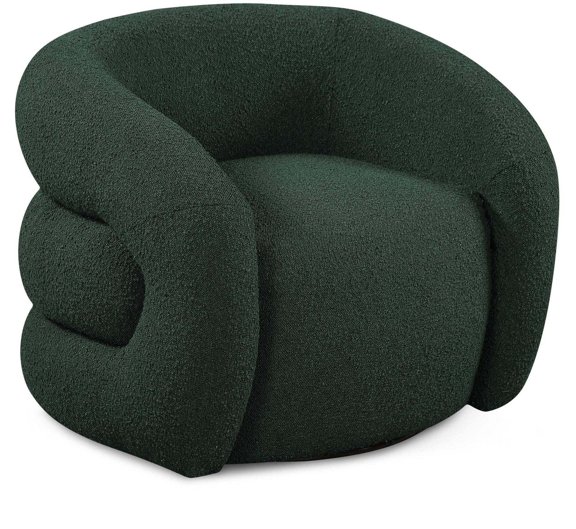 Nestle yourself into the welcoming confines of this Roxbury boucle fabric swivel accent chair. A decadent seat fit for a king, this handsomely modern chair is the ideal accent chair to add to a living room, den, bedroom or office. The rich boucle fabric blends nicely with most color schemes, and the deep channel tufted back is curved for comfort and eye appeal. The chair swivels, adding to the fun of what's sure to become everyone's favorite seat.